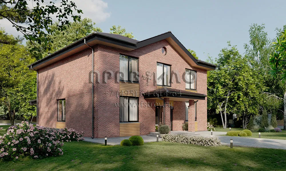 Проект двухэтажного дома с фронтоном и отделкой в английском стиле S2-229 (222-229-2)