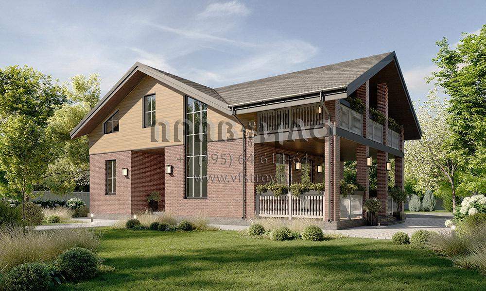 Проект дома со вторым светом в гостиной и большим балконом над террасой S2-229 (235-229-1М)