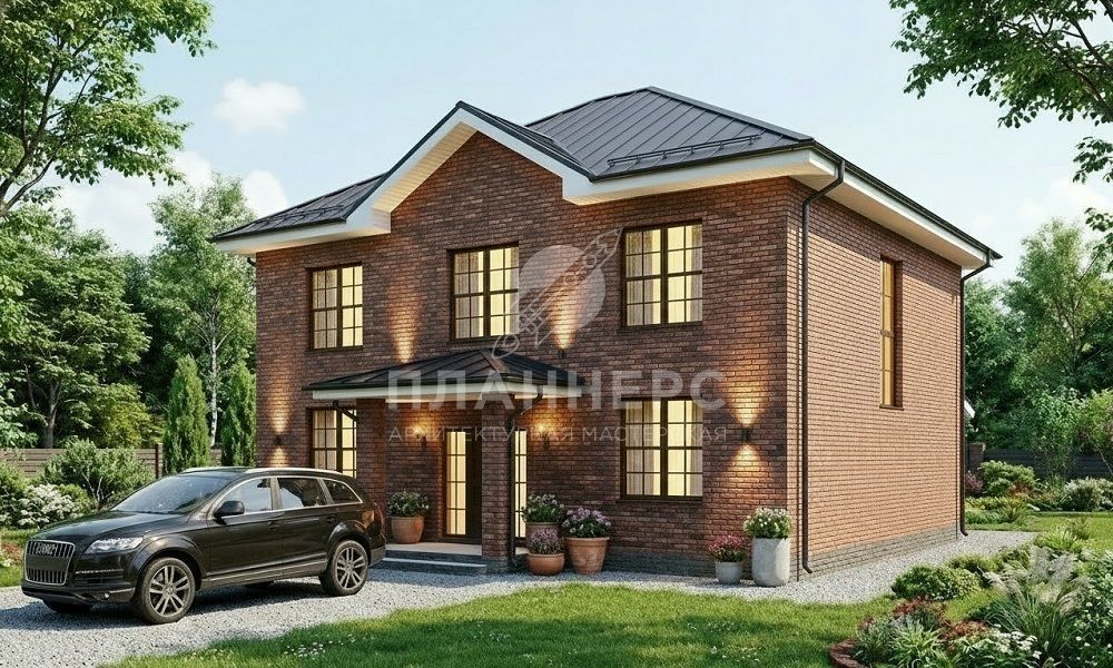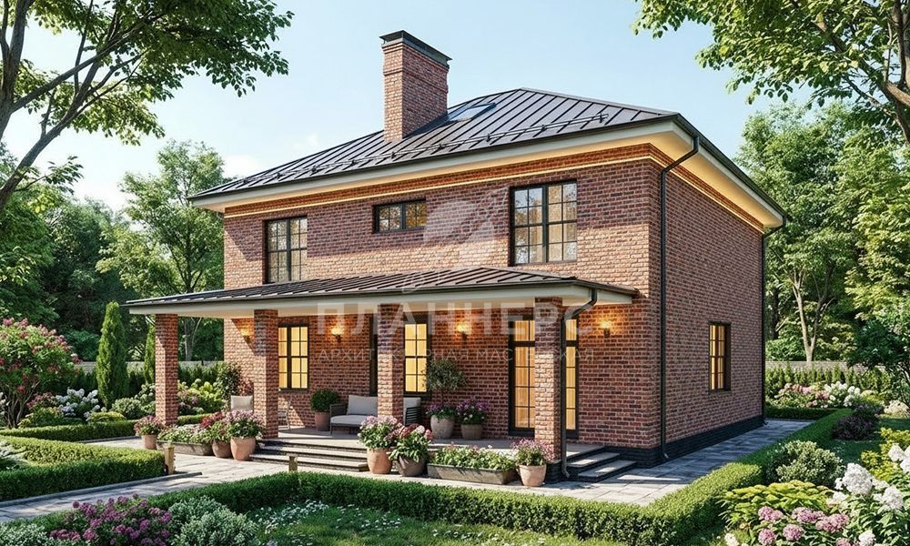 Проект с террасой и фасадом из кирпича классического цвета S2-229 (482-229-2)