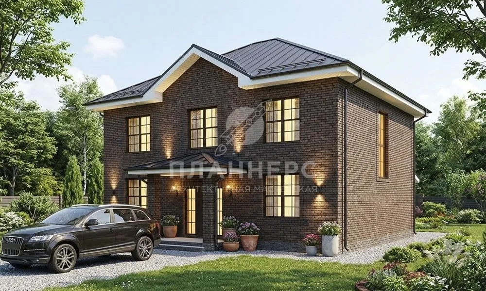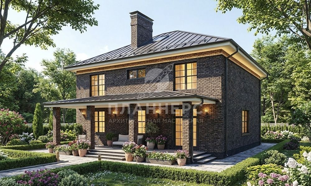 Проект с террасой и фасадом из тёмного кирпича S2-229 (529-229-2)