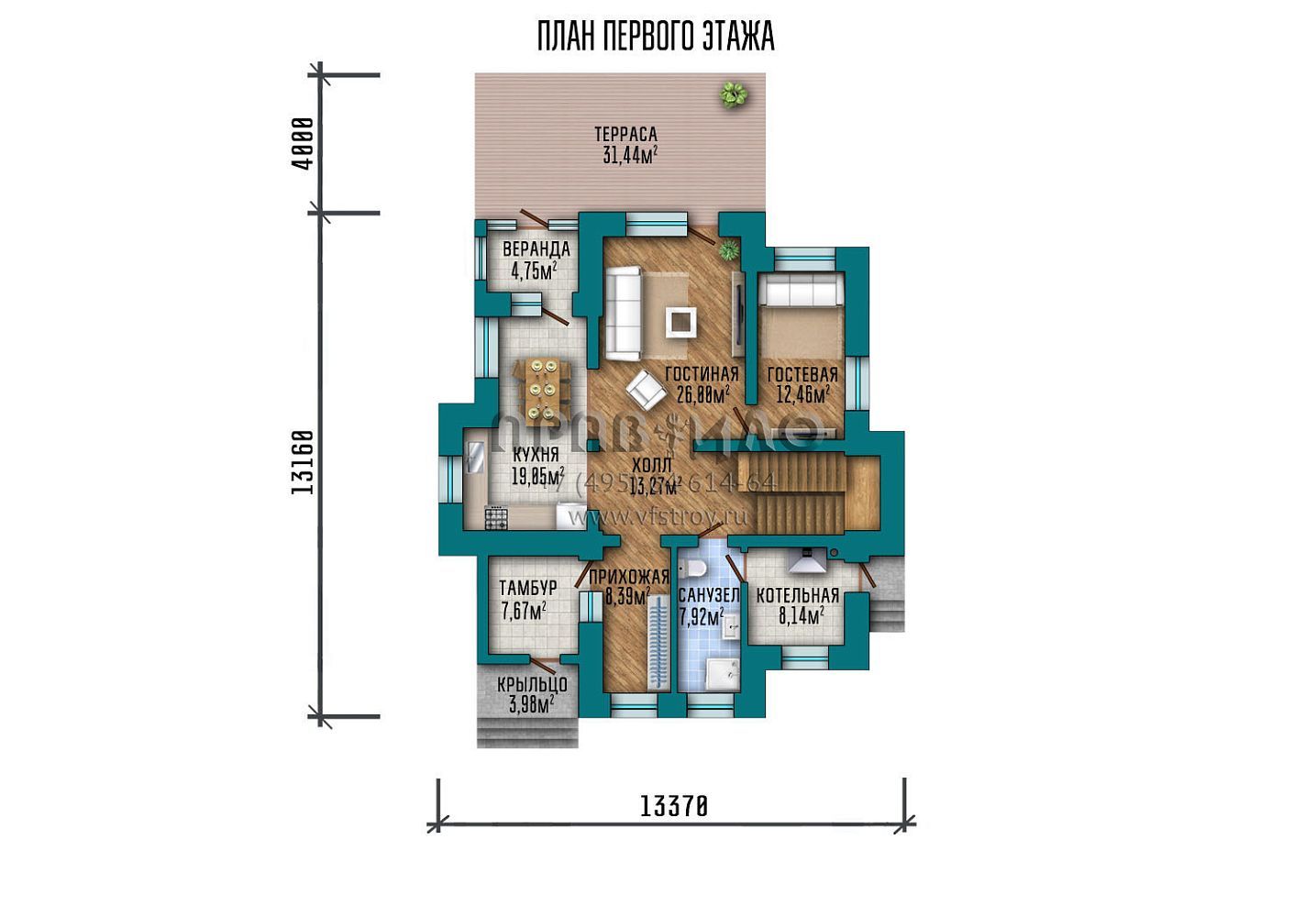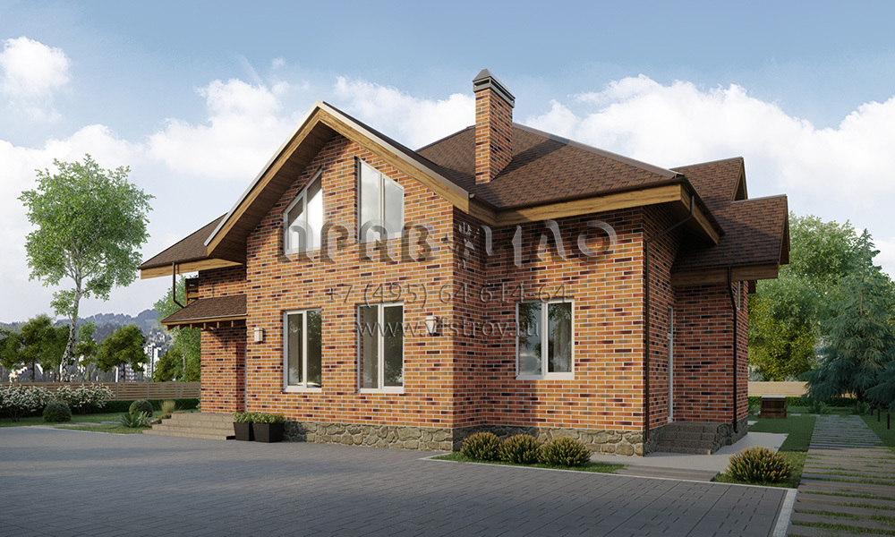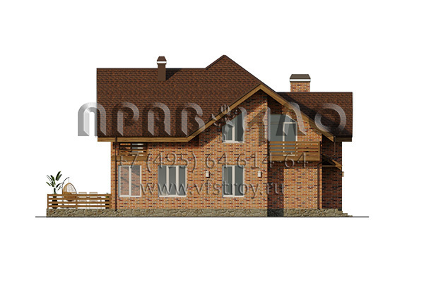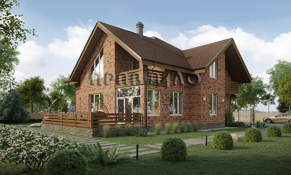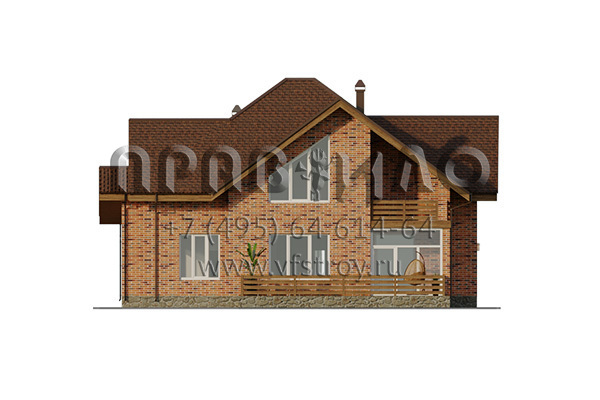 Проект красивого дома со сложной крышей, большой террасой и двумя балконами S2-233 (019-233-1М)