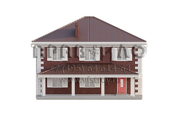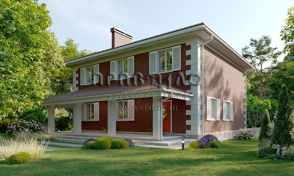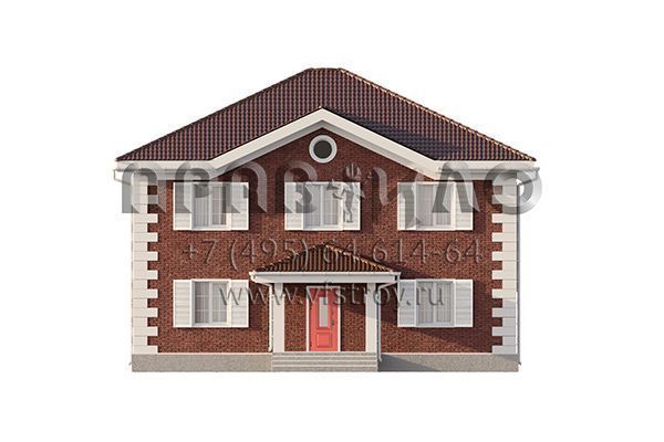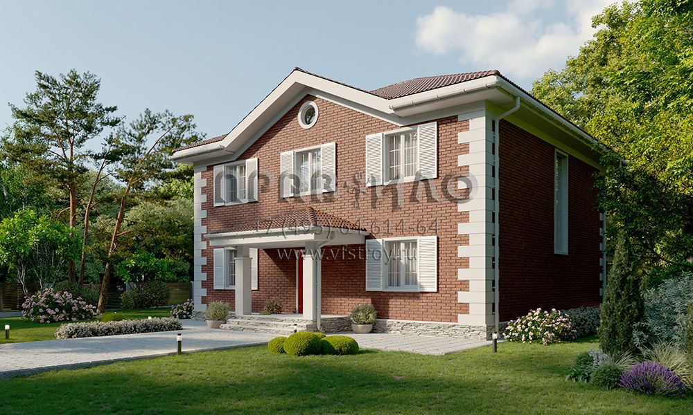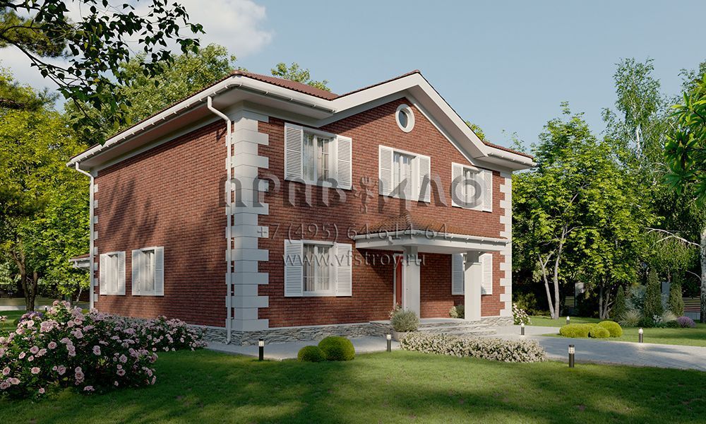 Проект двухэтажного дома с классической отделкой фасада облицовочным кирпичом и ставнями на окнах S2-241 (354-241-2)