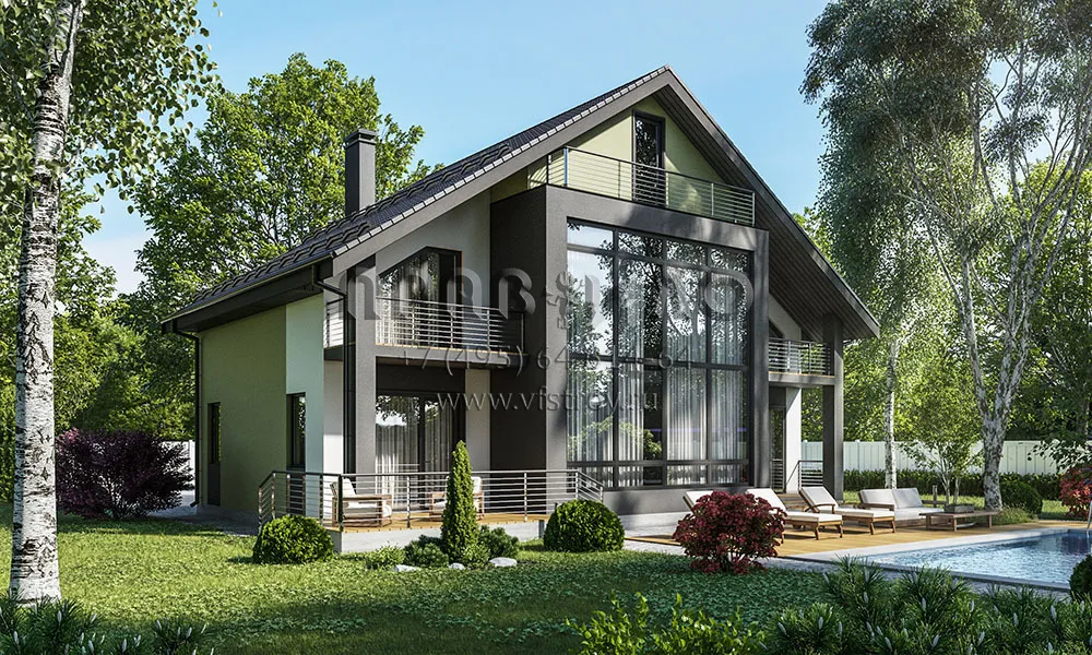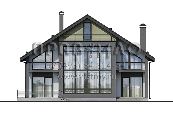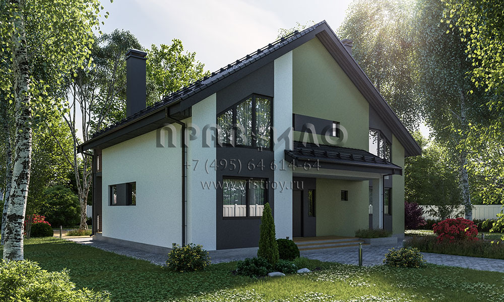 Проект двухэтажного дома с отделкой декоративной штукатуркой и большим витражным окном S2-264 (126-264-1М)