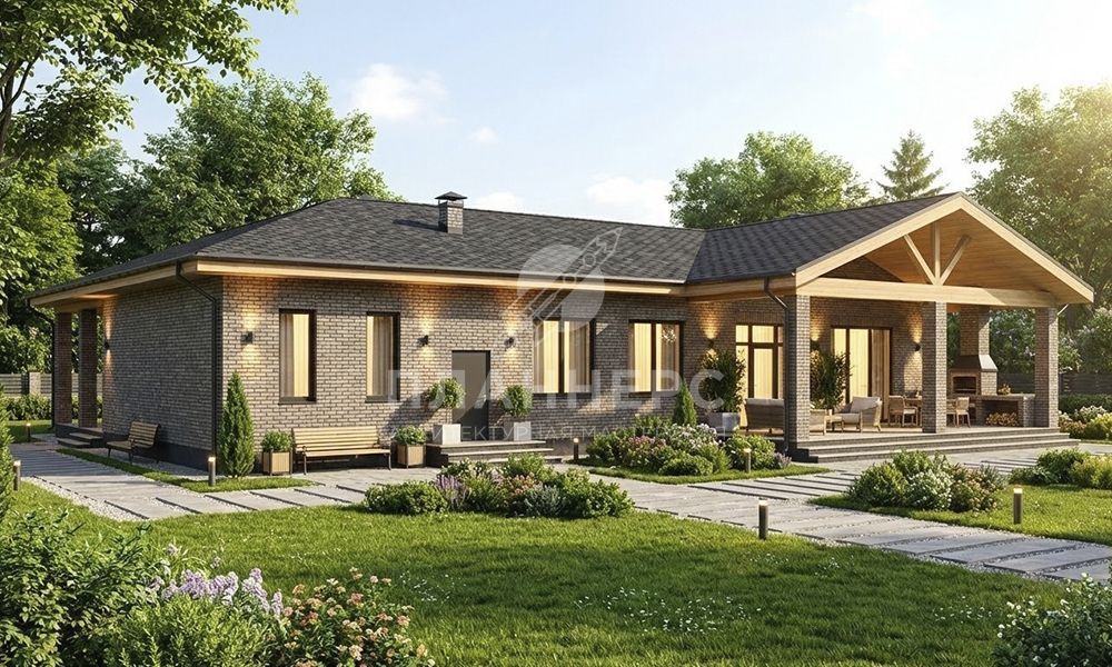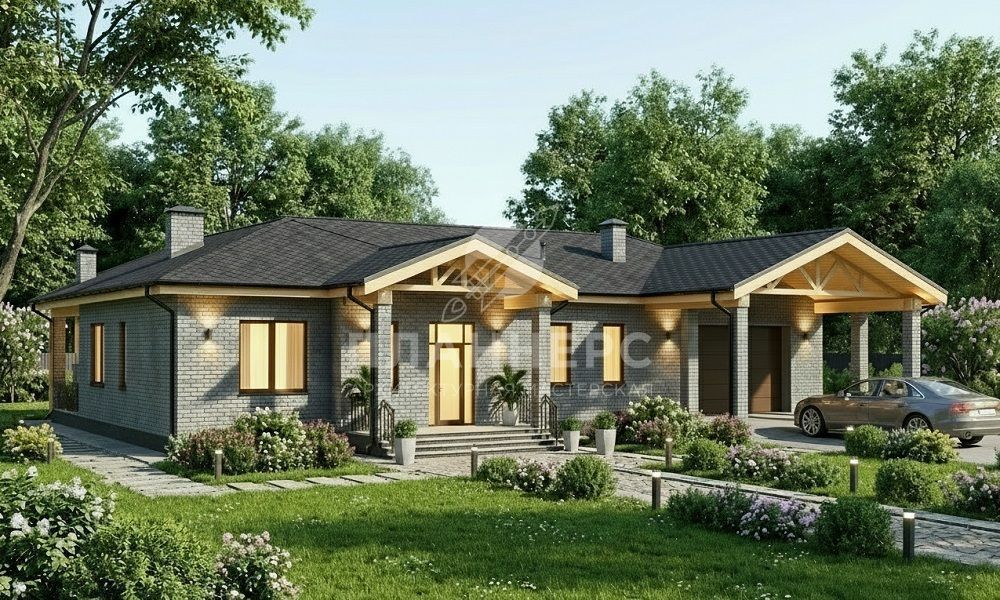 Проект с подвалом и фасадом из серого кирпича S2-297 (546-298-1ПГ)