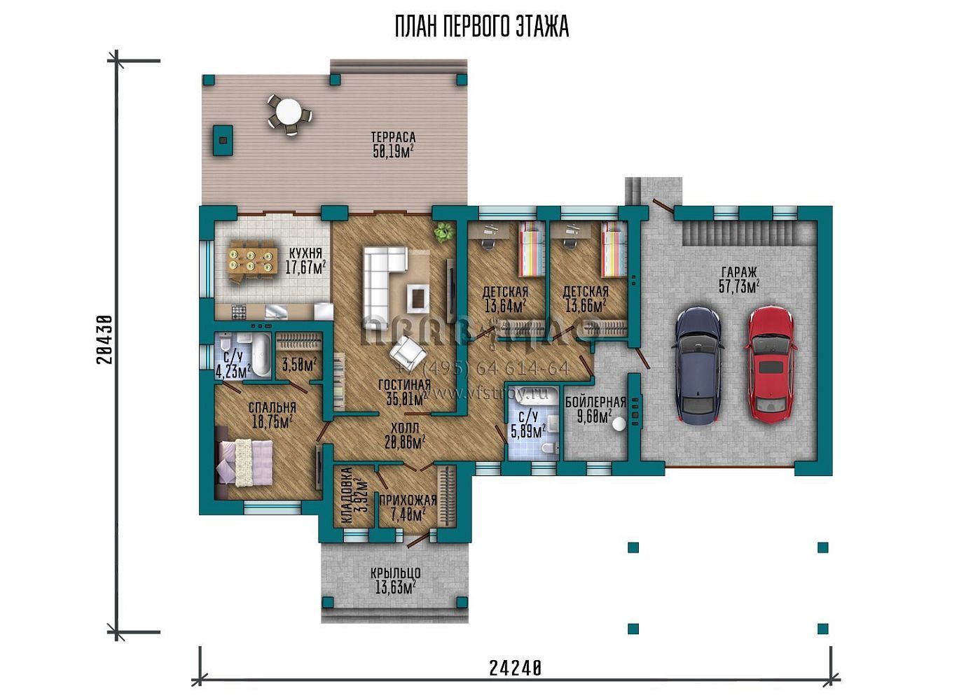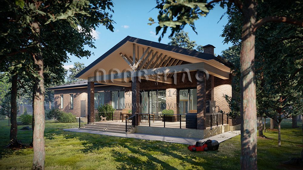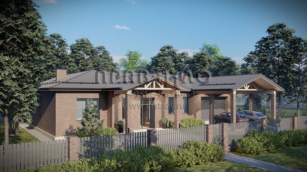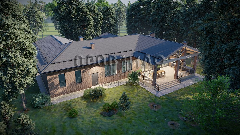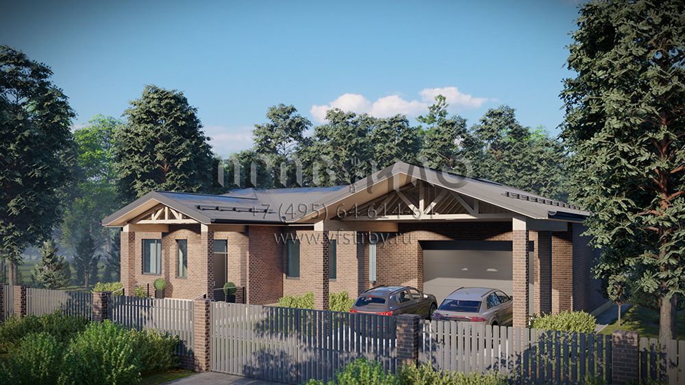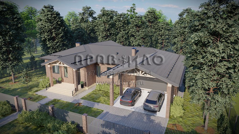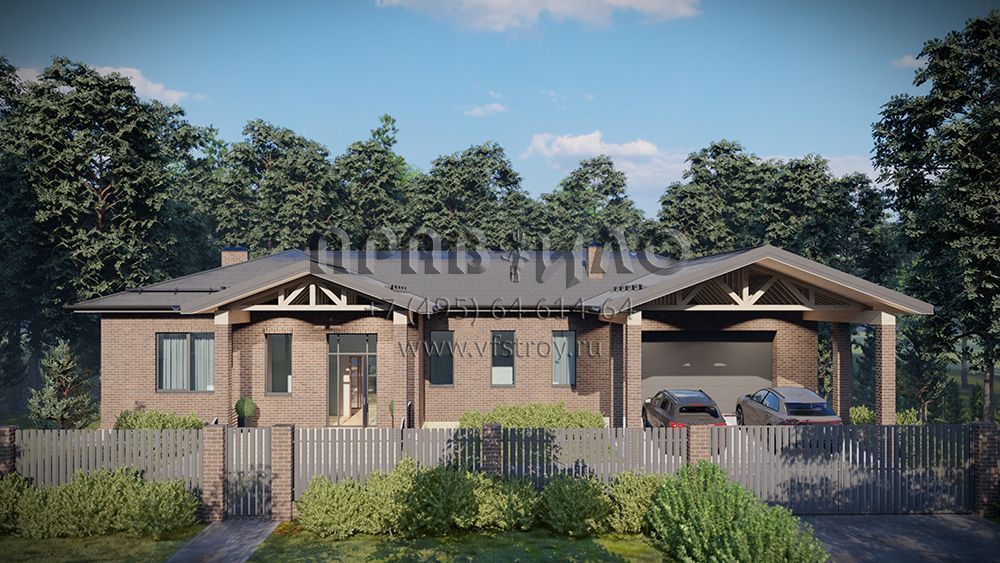 Проект большого одноэтажного дома с большим гаражом, подвалом и крытой террасой S2-298 (284-298-1ПГ)