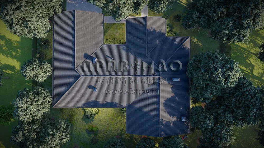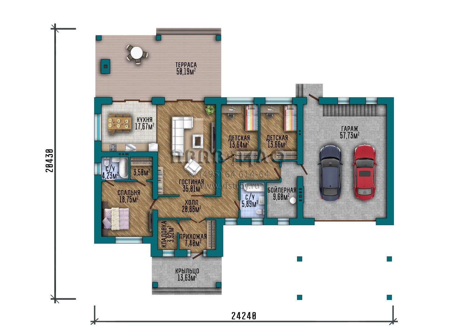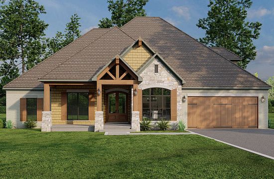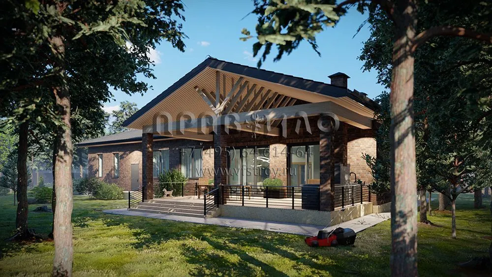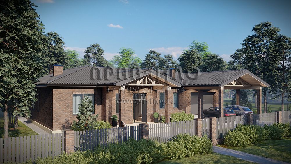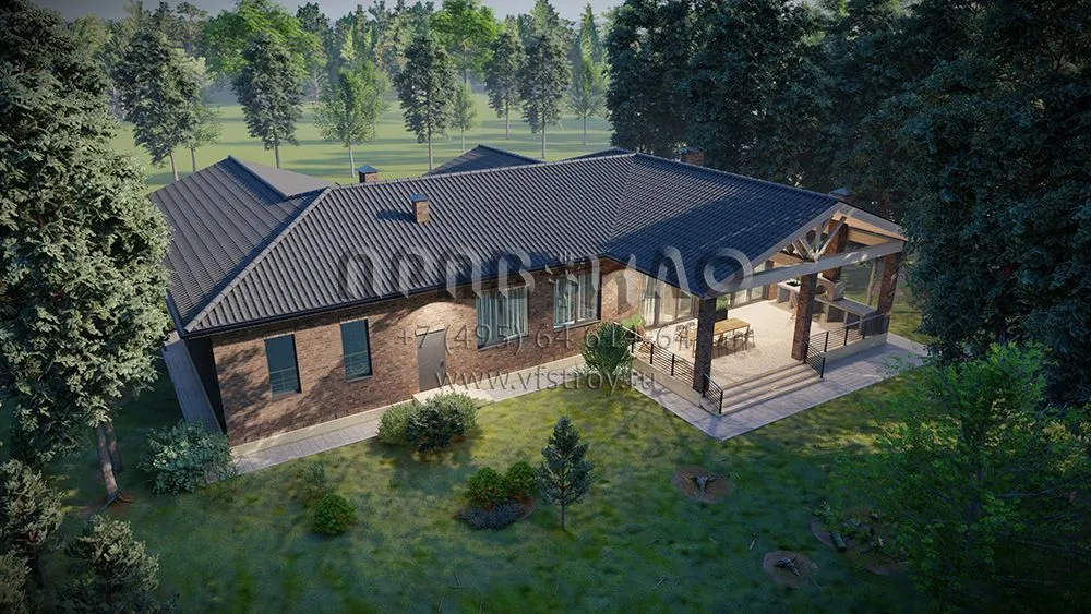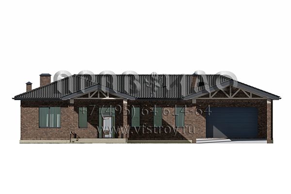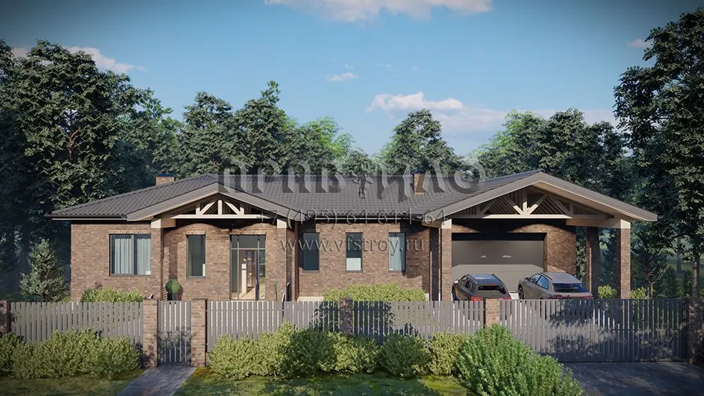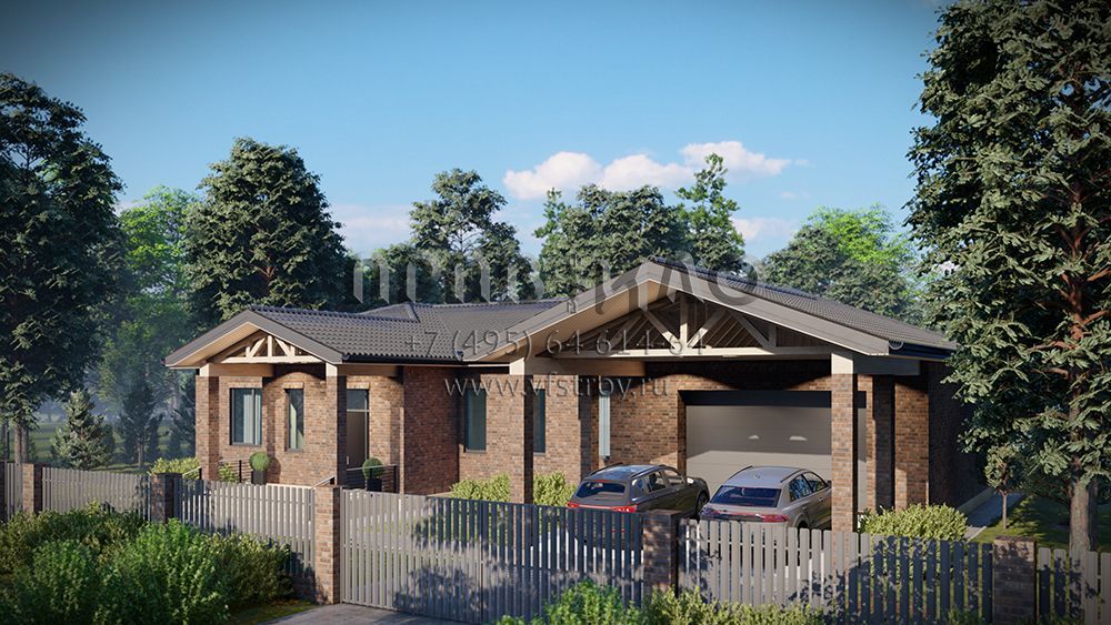 Проект большого одноэтажного дома с подвалом, террасой на заднем дворе и гаражом на 2 автомобиля S2-298 (307-298-1ПГ)