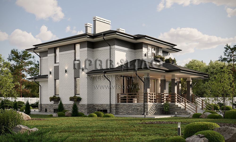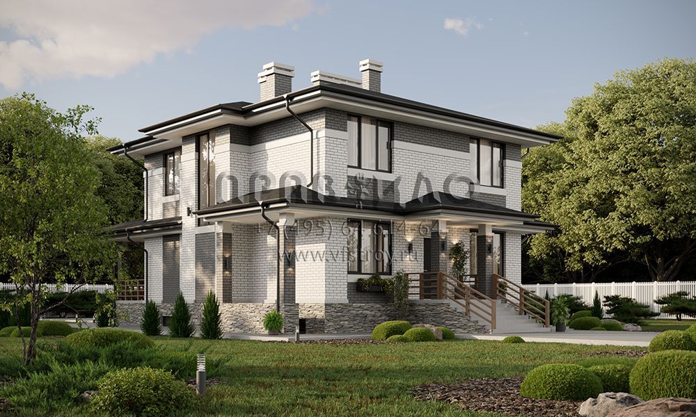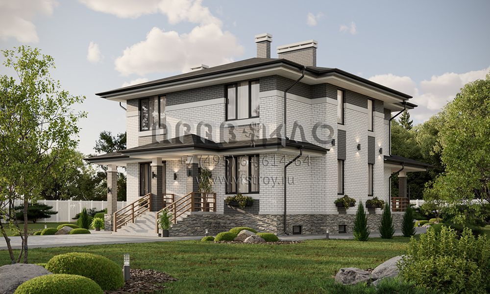 Проект большого дома в стиле Райт с подвалом и балконом на втором этаже S2-303 (330-303-2П)