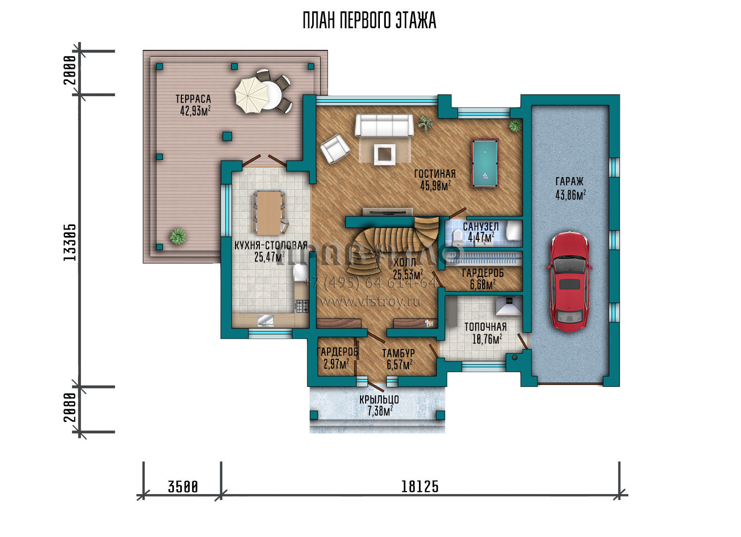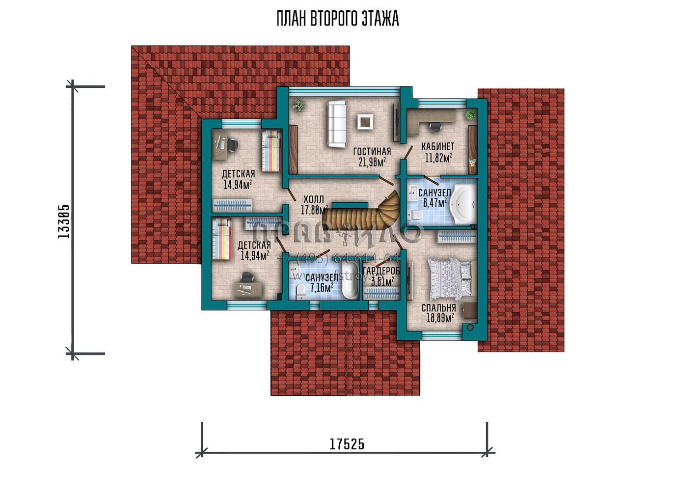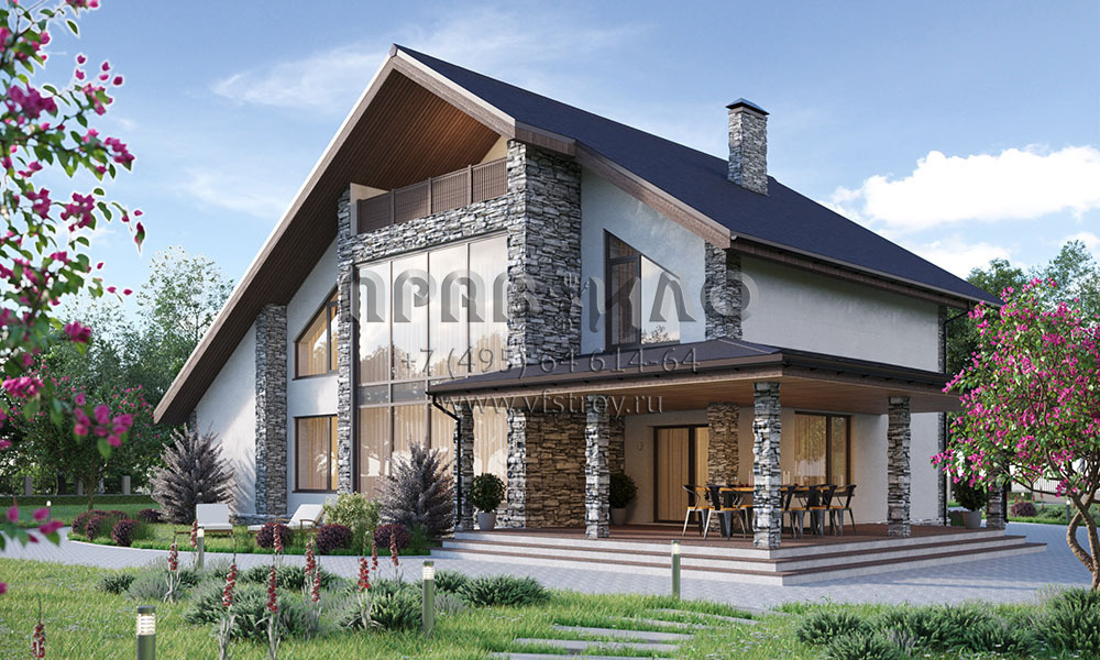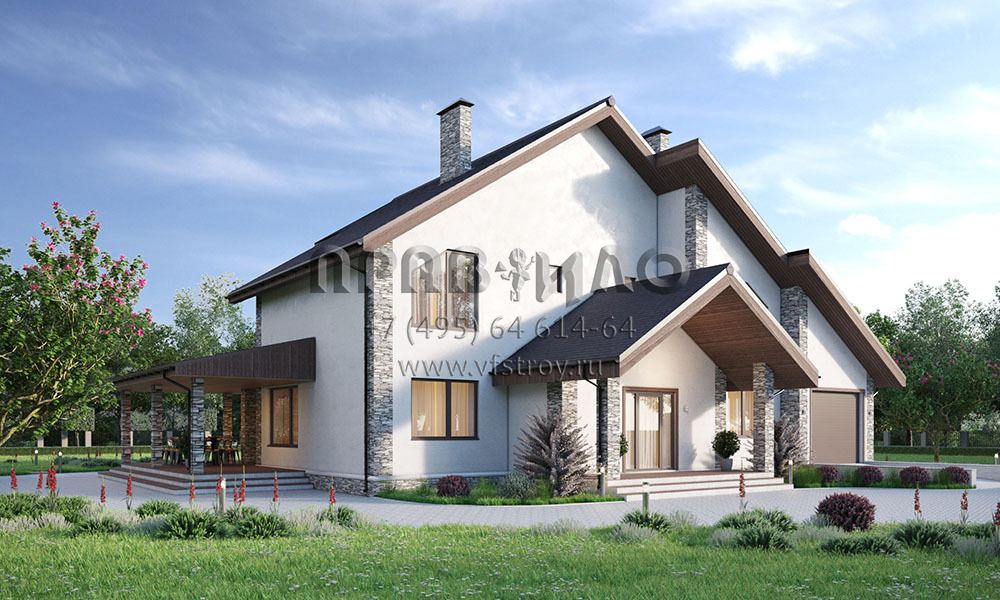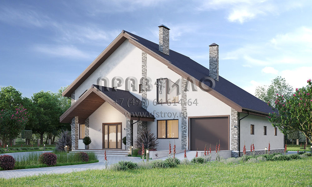 Проект большого двухэтажного дома с мансардой и гаражом на 2 автомобиля S2-361 (082-361-2МГ)