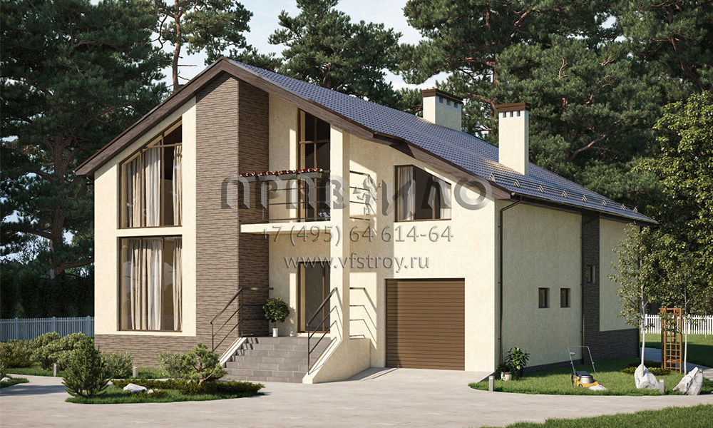 Проект дома в трех уровнях с большими окнами, балконом и гаражом S2-364 (013-364-1МПГ)
