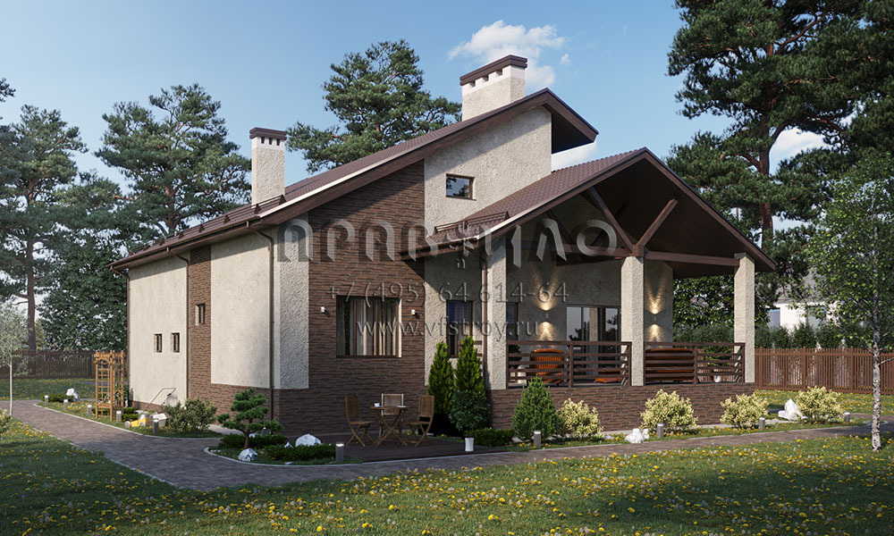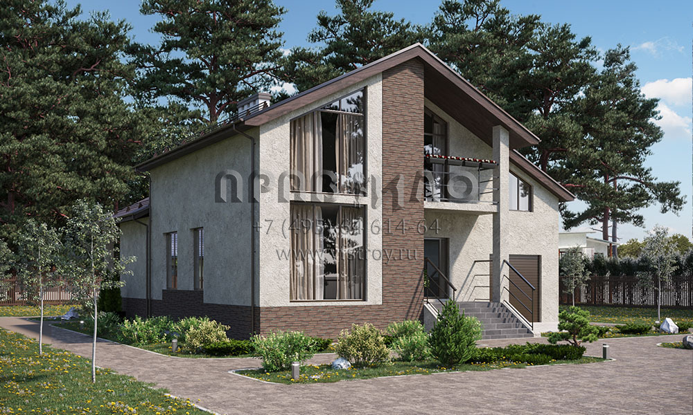 Проект большого загородного дома с подвалом, гаражом, мансардой и панорамными окнами S2-364 (140-364-1МПГ)