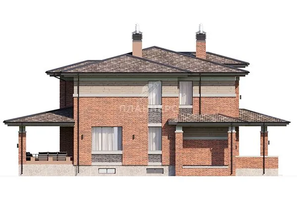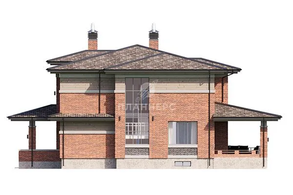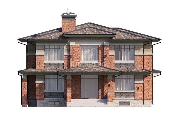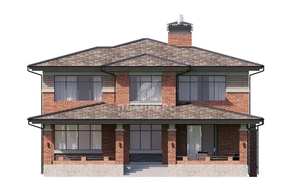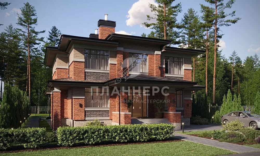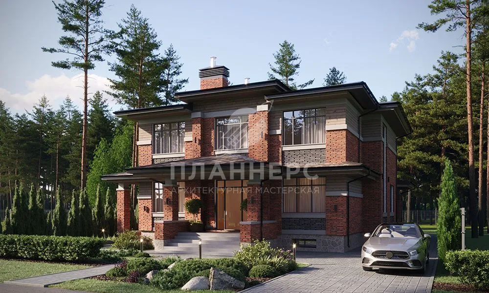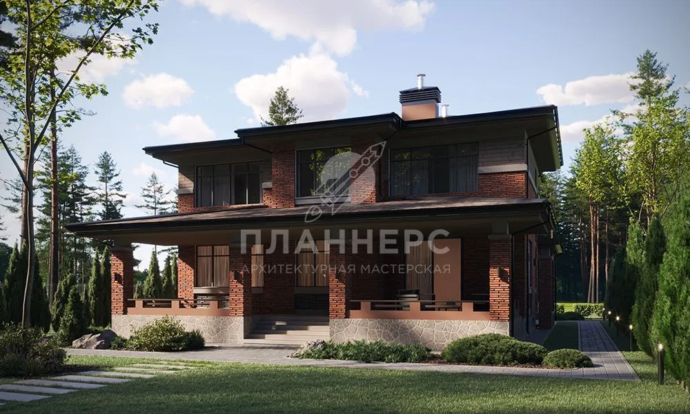 Проект двухэтажного дома с подвалом, большой террасой и красивым фасадом в стиле Райта S2-368 (428-368-2П)