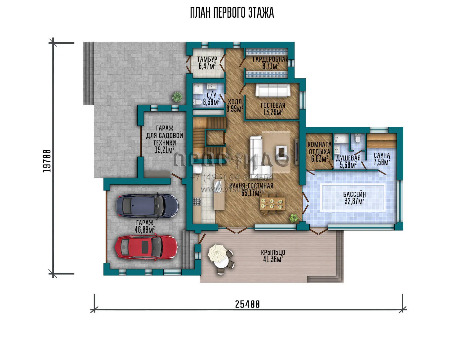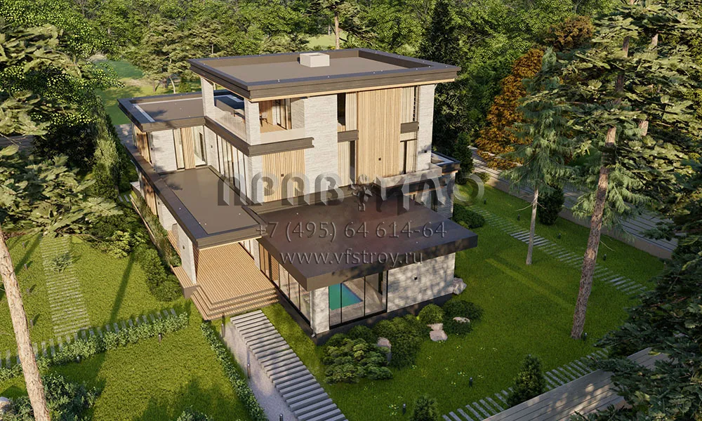 Проект трехэтажного ультрасовременного дома с большой площадью остекления, бассейном и гаражом S2-446 (170-446-3Г)