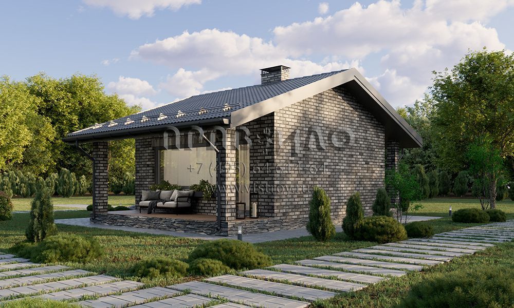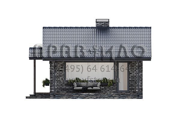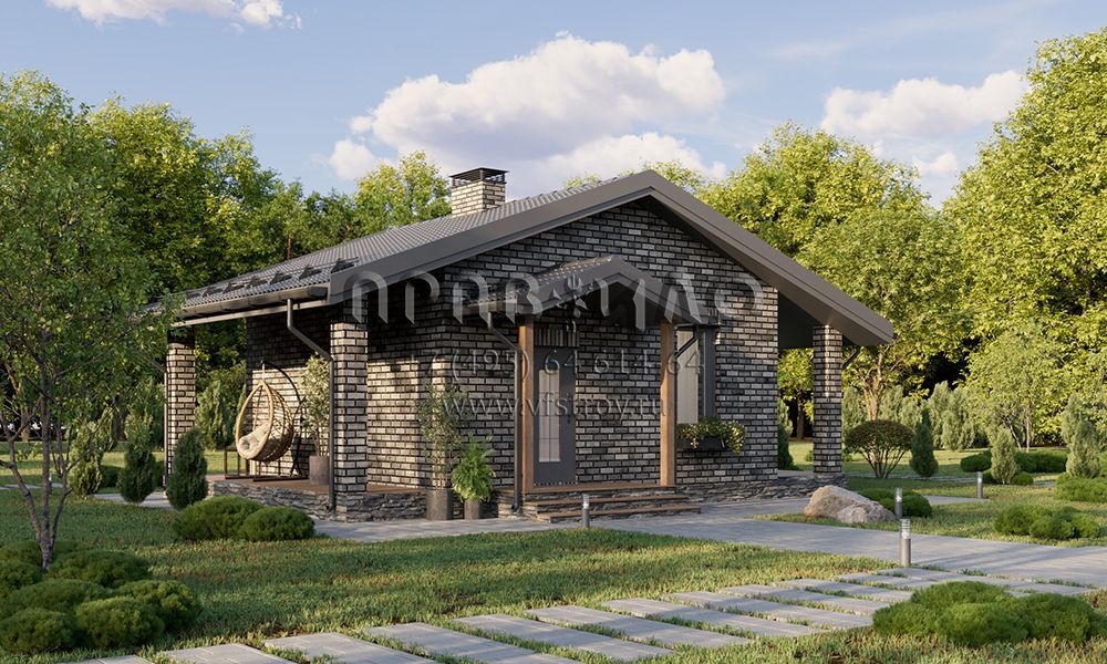 Проект компактной одноэтажной бани с просторной комнатой отдыха с выходом на крытую террасу S2-48 (367-48-1)
