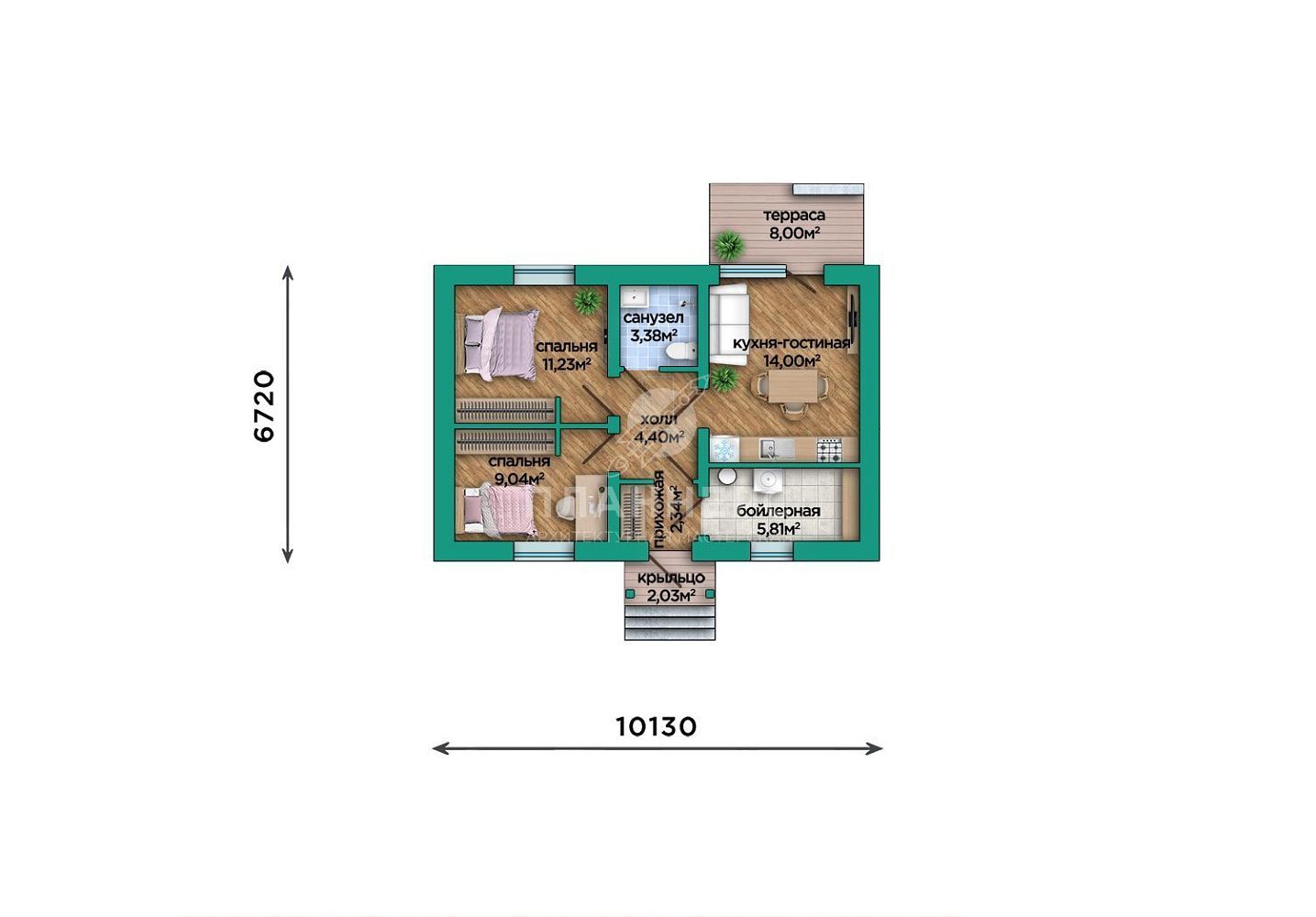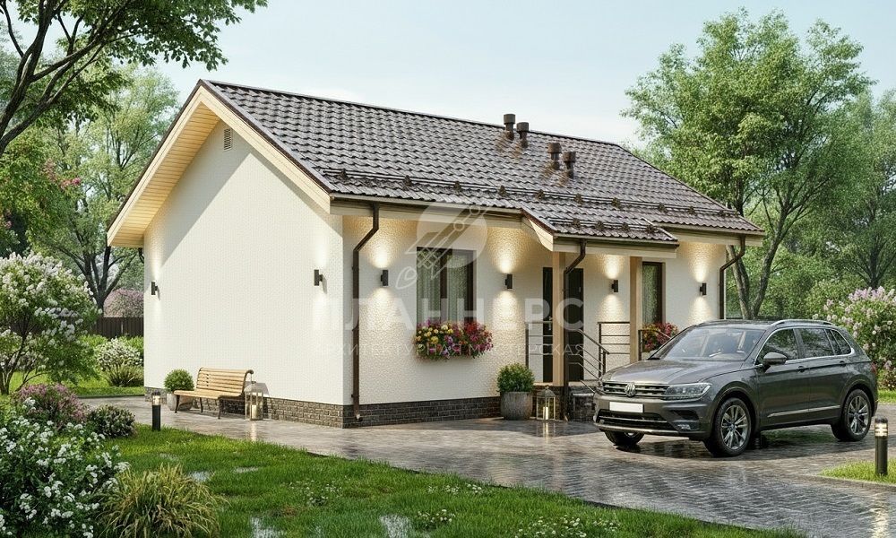 Проект из газобетона с оштукатуренным фасадом S2-50 (555-50-1)