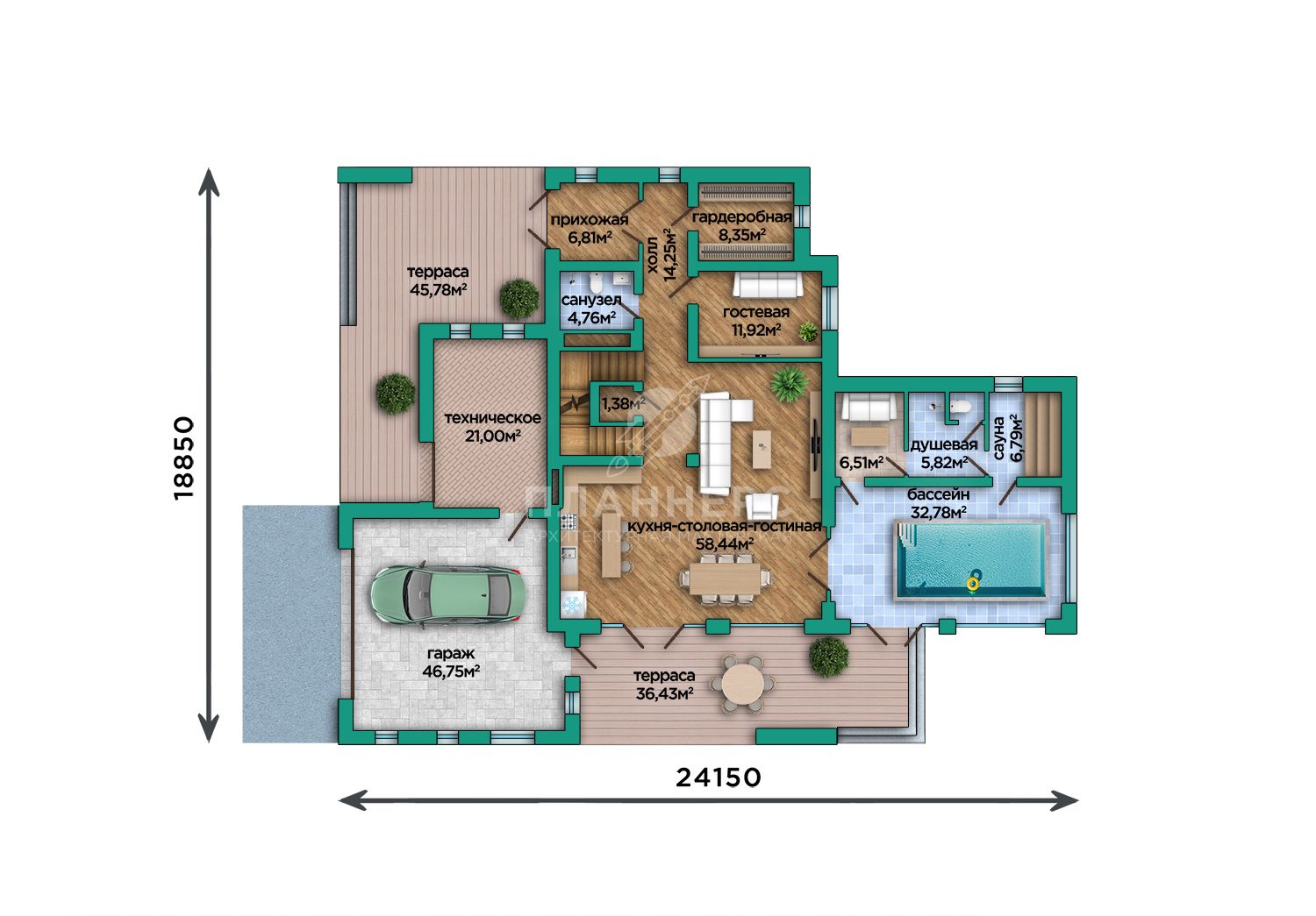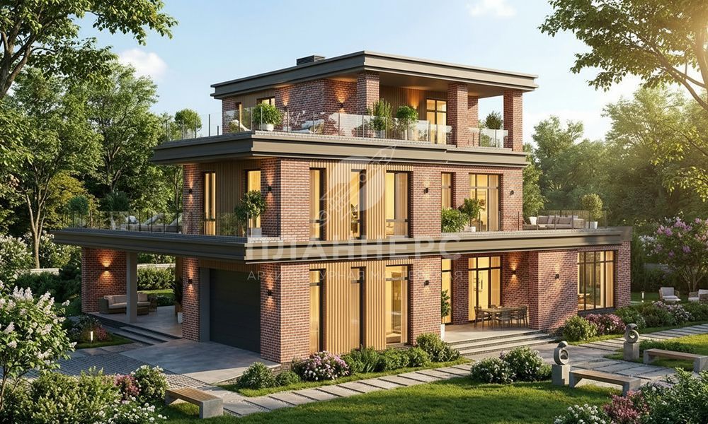 Проект с плоской крышей, террасой и гаражом на два автомобиля S2-552 (490-552-3Г)