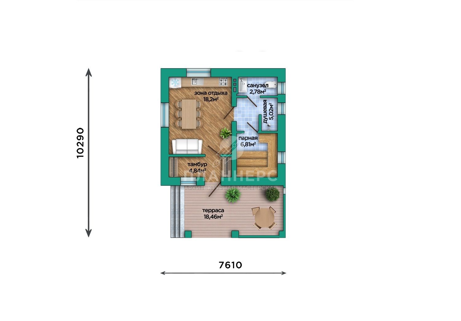Проект с террасой из керамических блоков S2-56 (389-56-1)