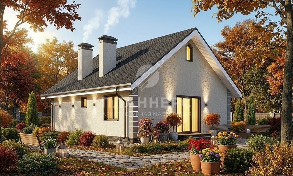 Проект из газобетона с оштукатуренным фасадом S2-60 (278-60-1)