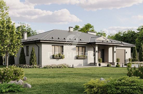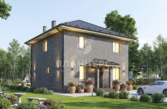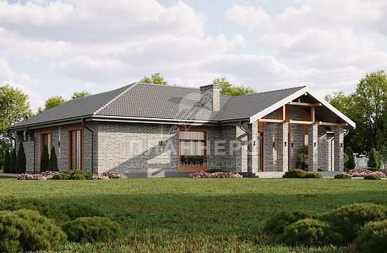 Проект из газобетона с террасой и кирпичным фасадом S2-65 (247-65-1)