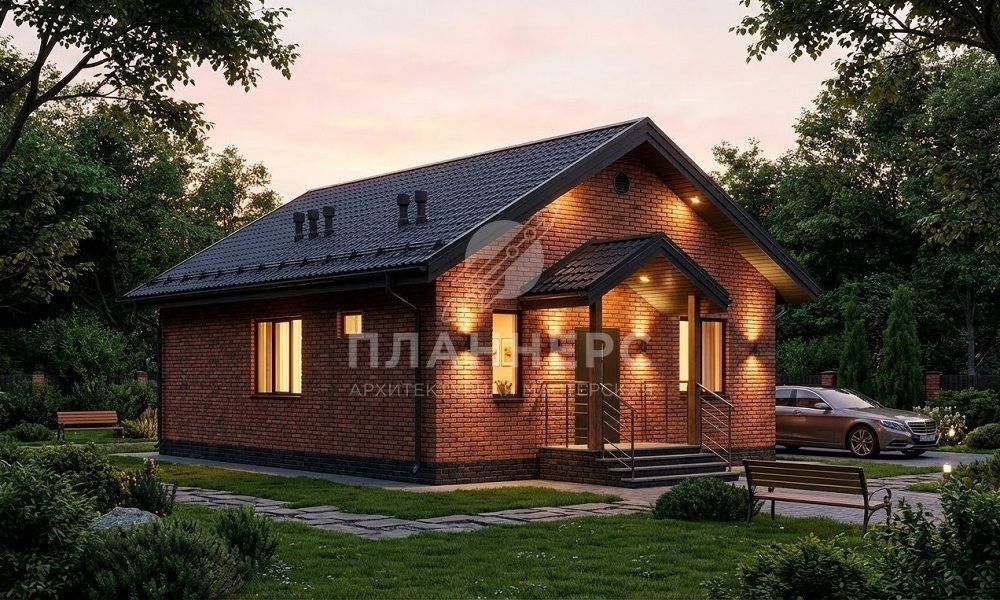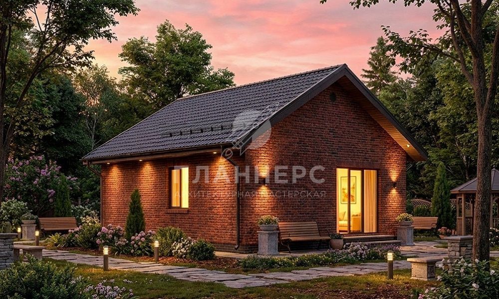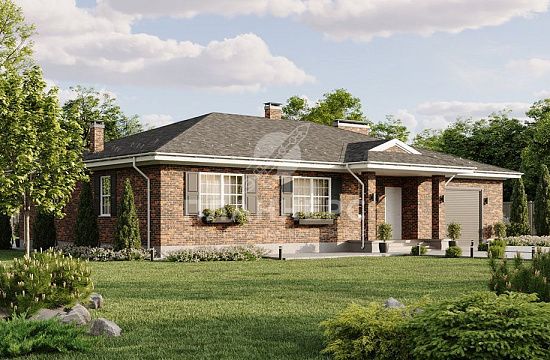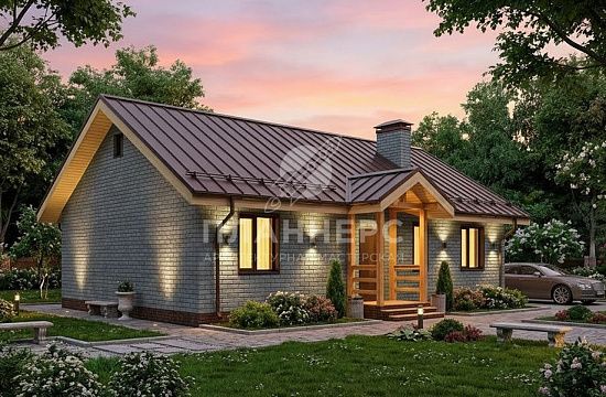 Проект из газобетона с кирпичной облицовкой и металлочерепицей S2-65 (329-65-1)