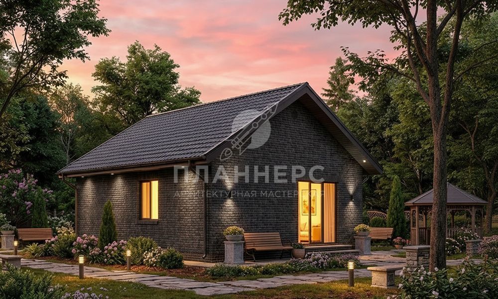 Проект из газобетона с кирпичной облицовкой и металлочерепицей S2-65 (518-65-1)