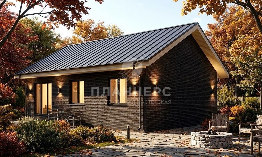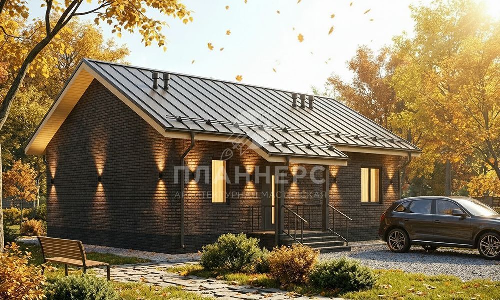 Проект из газобетона с кирпичным фасадом и фальцевой кровлей S2-75 (517-75-1)