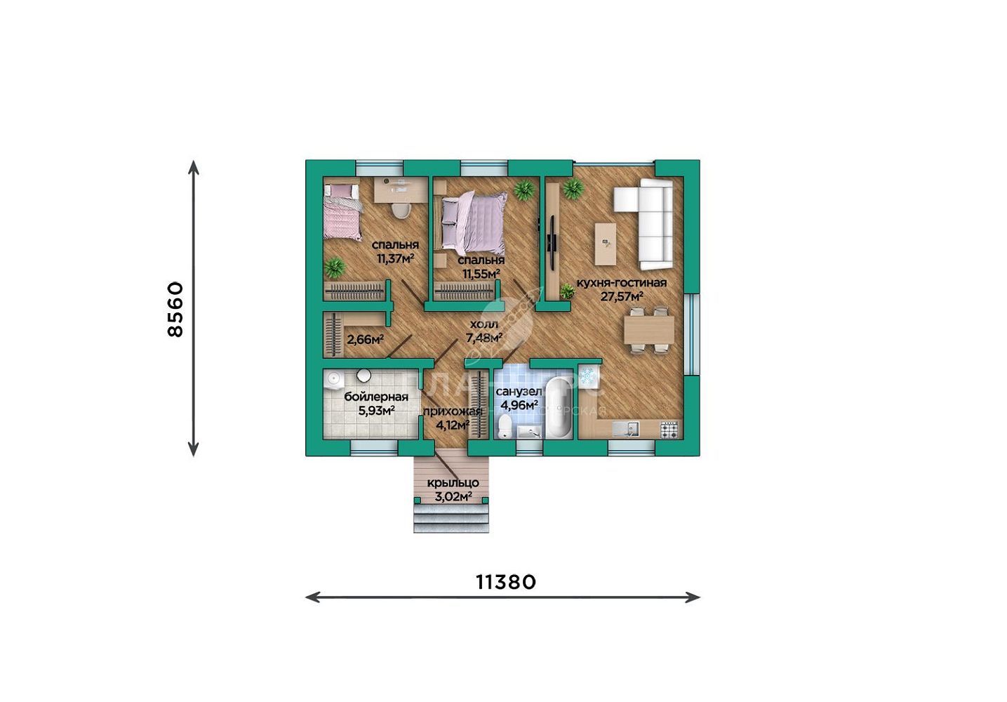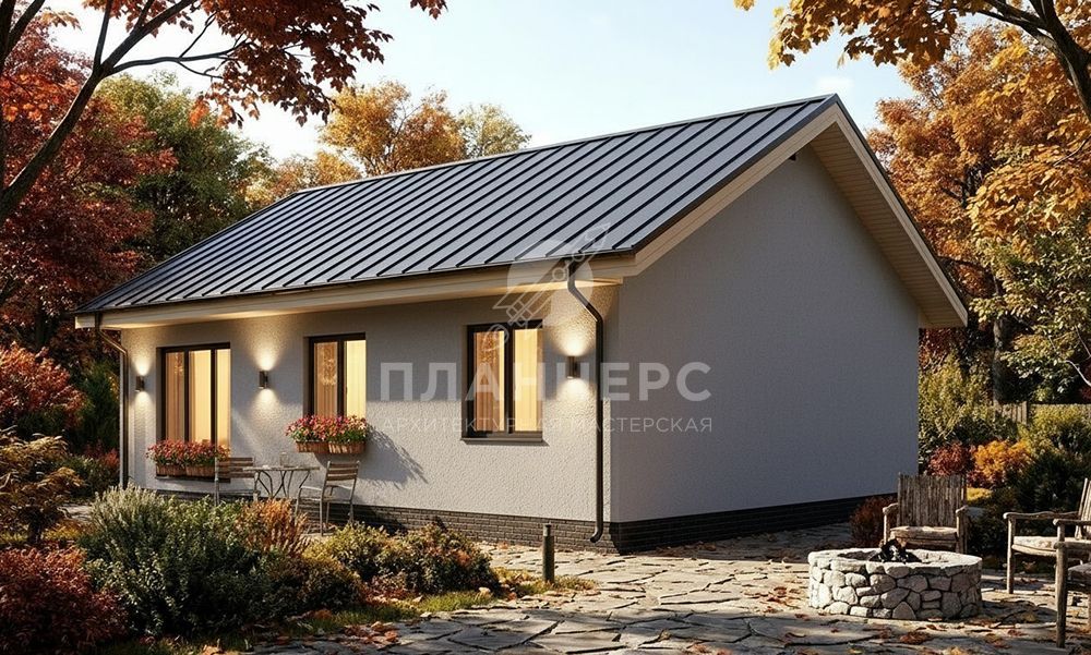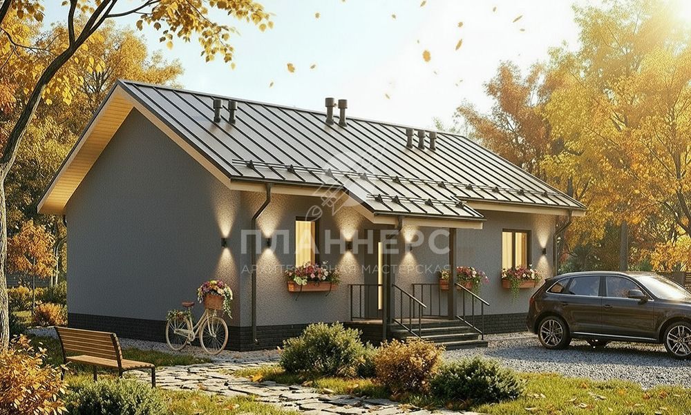 Проект из газобетона с оштукатуренным фасадом и фальцевой кровлей S2-75 (557-75-1)