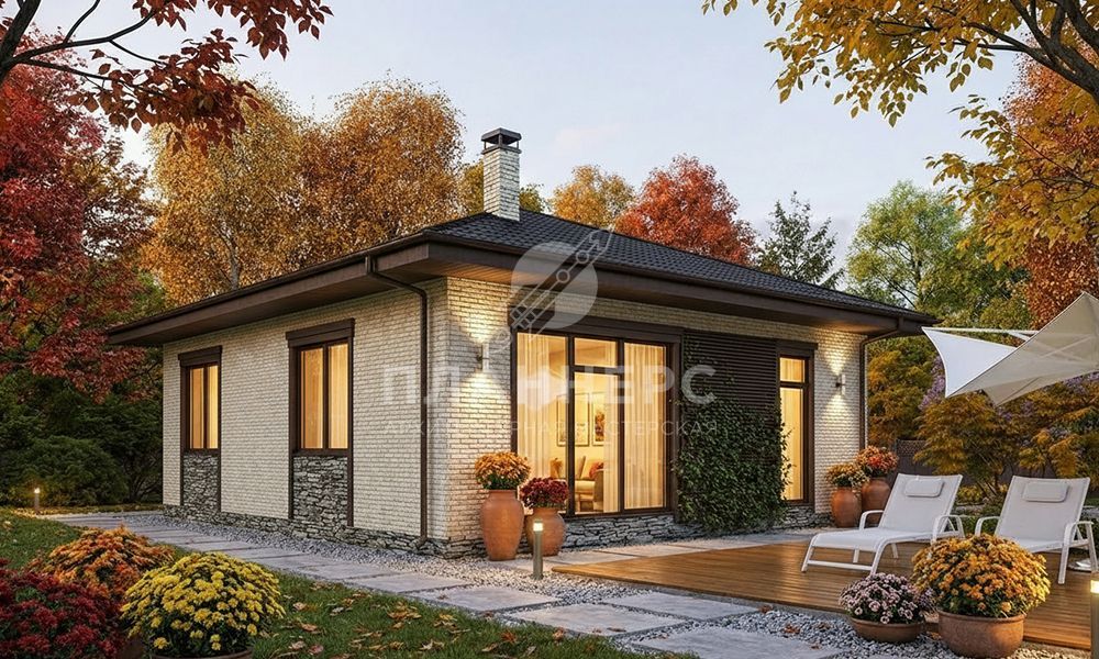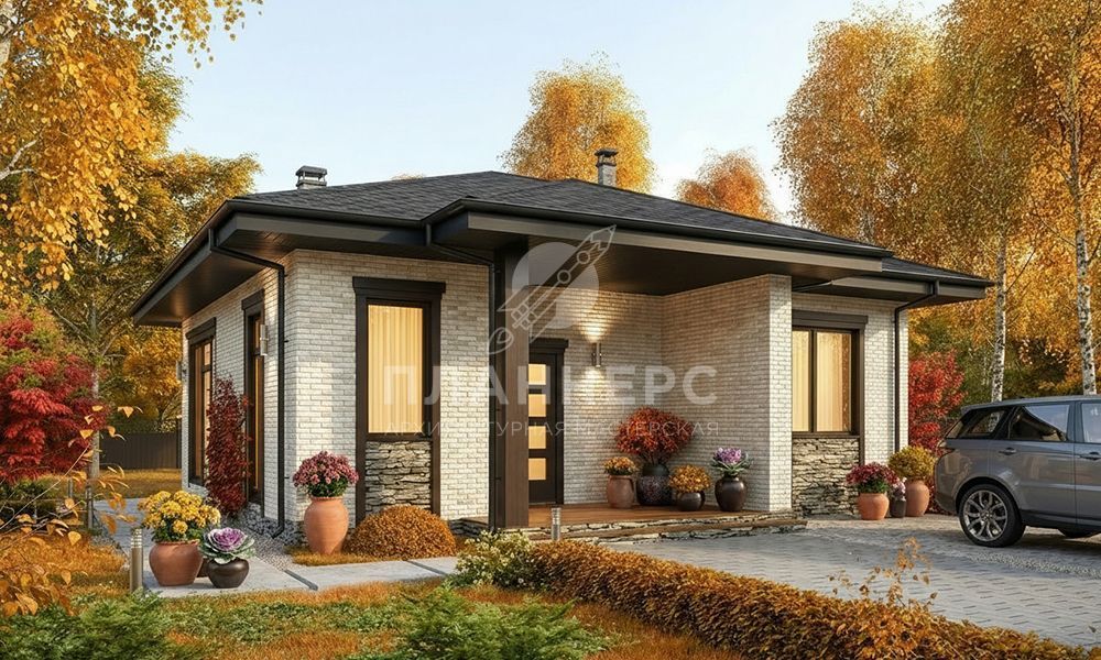Проект с комбинированной крышей и фасадом из светлого кирпича S2-76 (486-77-1)