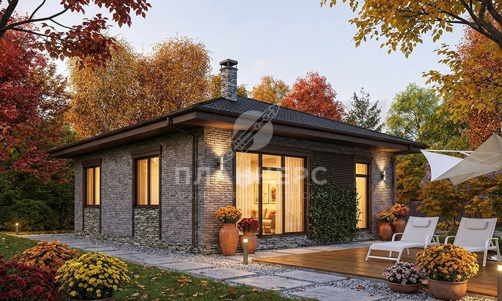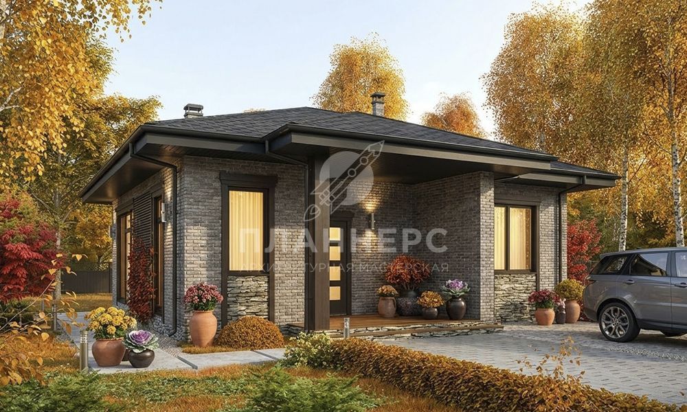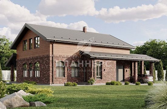 Проект с комбинированной крышей и фасадом из тёмного кирпича S2-76 (533-77-1)