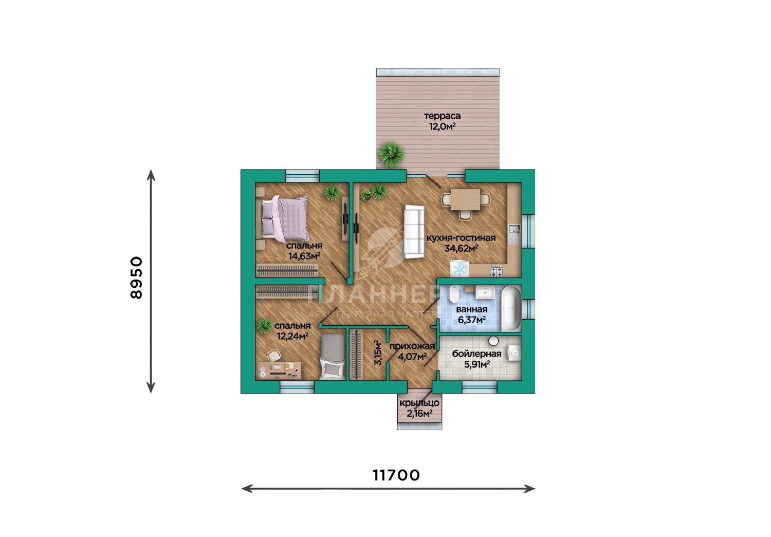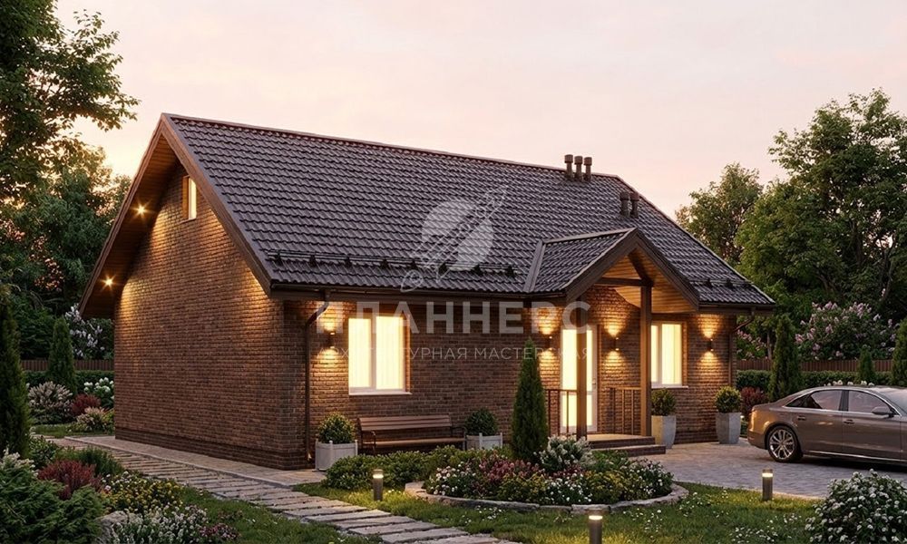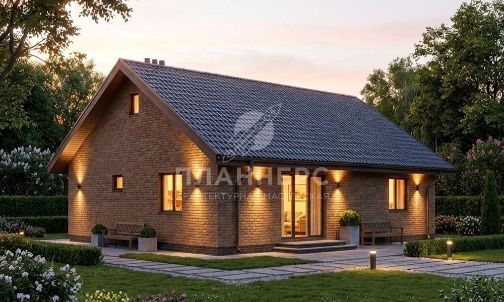 Проект компактного одноэтажного дома из газобетона с кирпичной отделкой S2-80 (179-80-1)