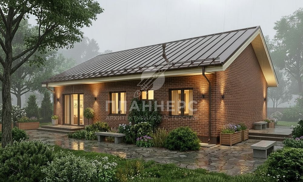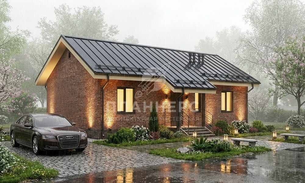 Проект из газобетона с кирпичным фасадом и фальцевой кровлей S2-85 (288-85-1)