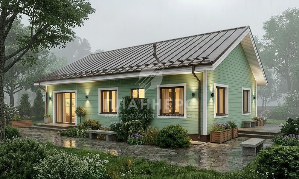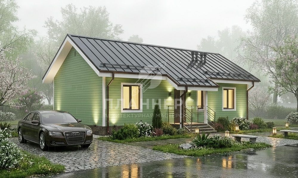 Проект из газобетона с фасадом из сайдинга и фальцевой кровлей S2-85 (466-85-1)