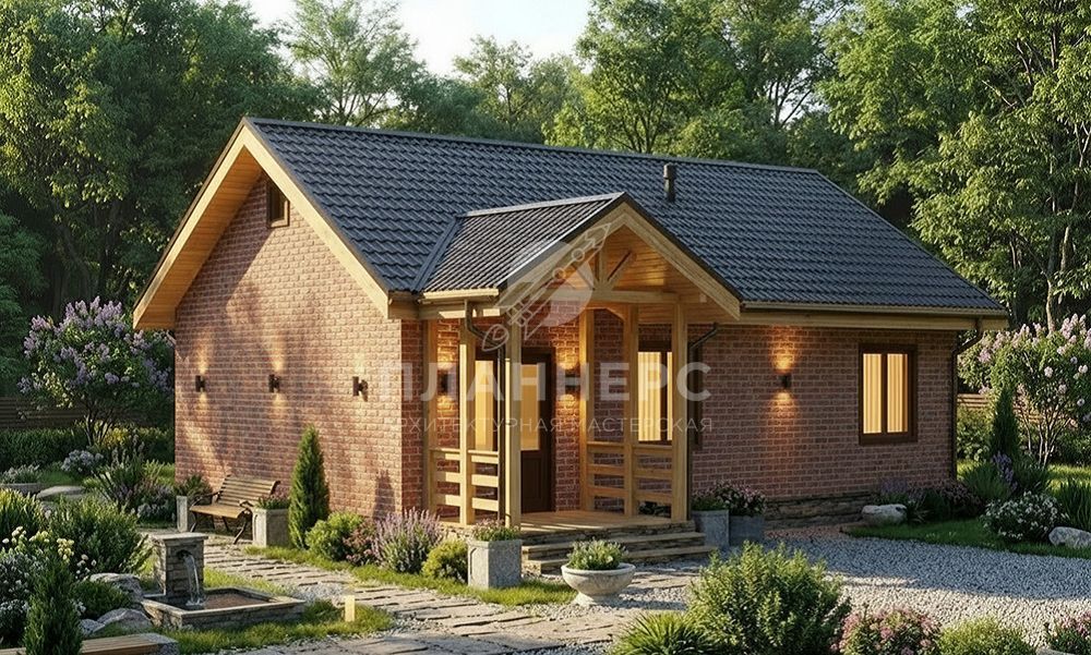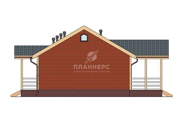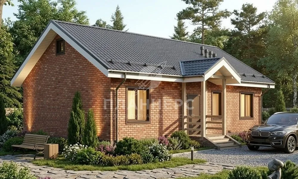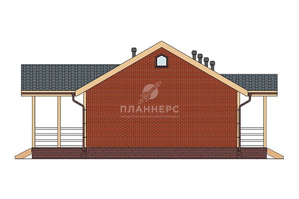Проект одноэтажного дома 90 квадратных метров из газобетона с террасой и кирпичным фасадом S2-90 (200-90-1)