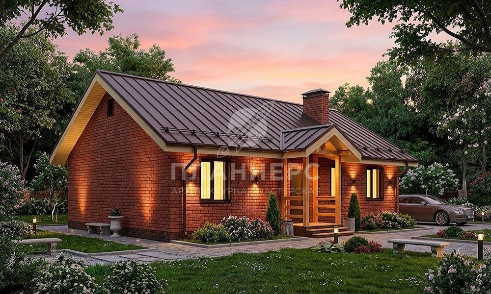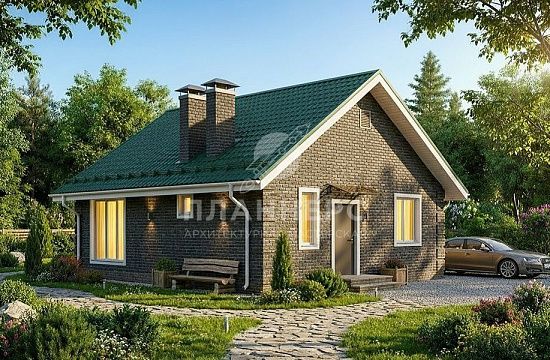 Проект из газобетона с кирпичным фасадом и фальцевой кровлей S2-90 (388-90-1)