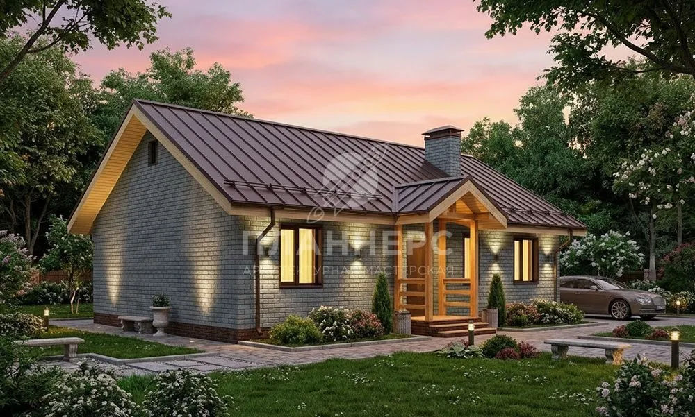 Проект из газобетона с кирпичным фасадом и фальцевой кровлей S2-90 (521-90-1)