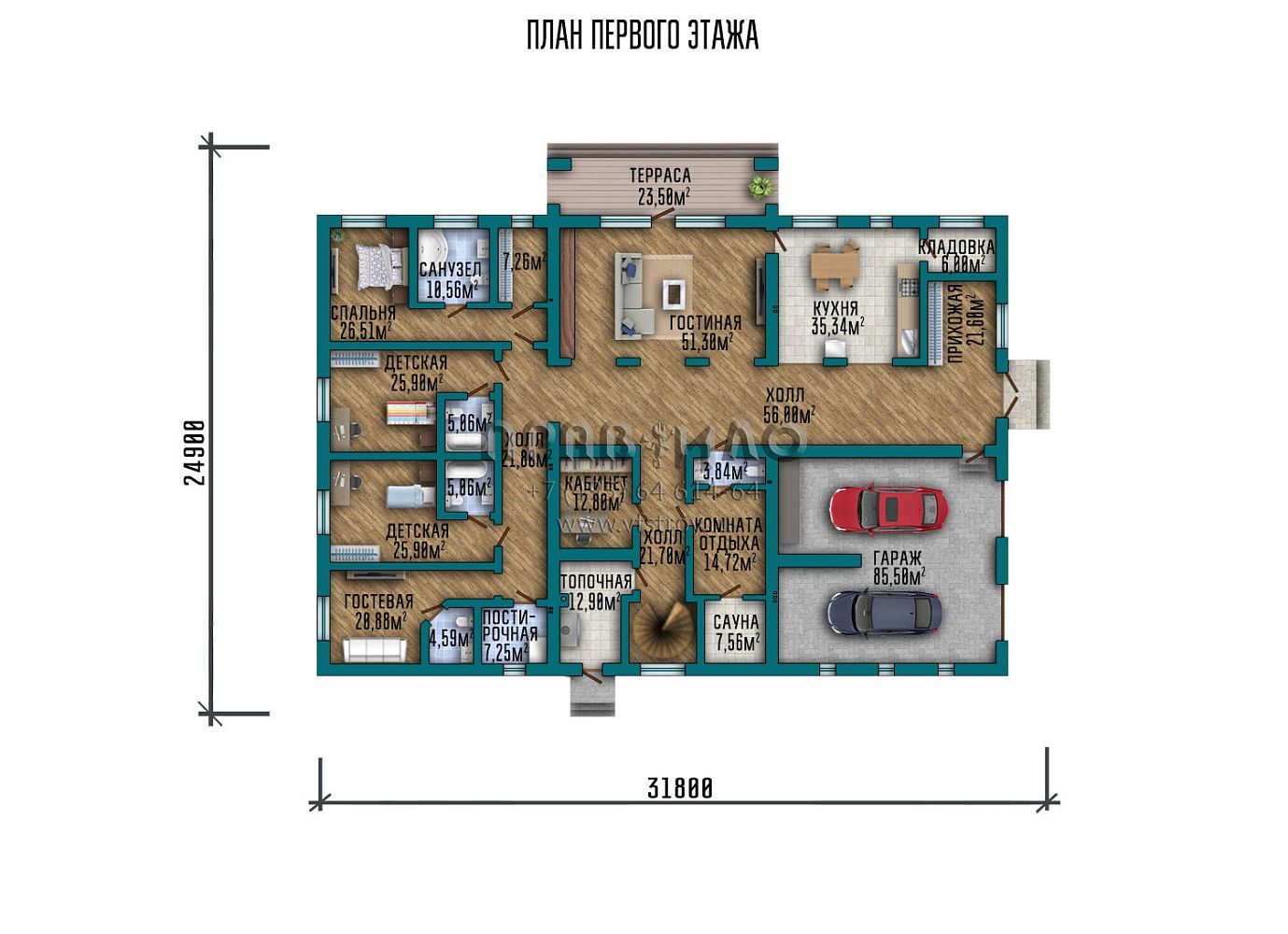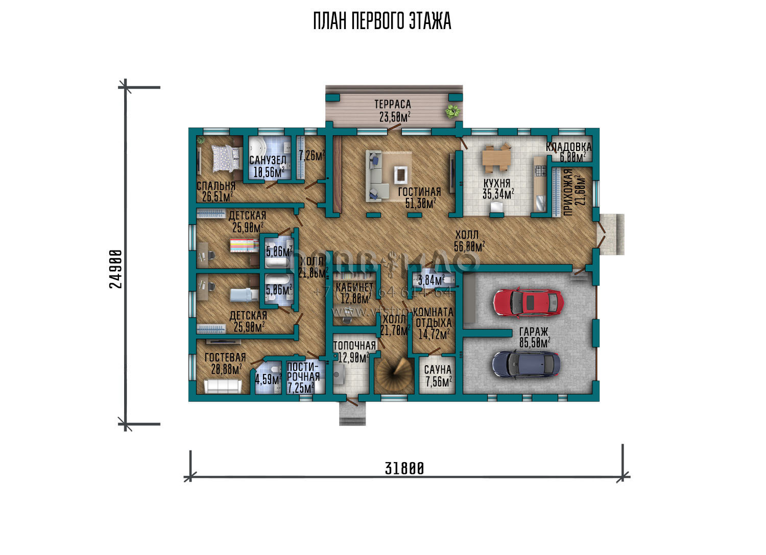 | Гараж | 2 машины |