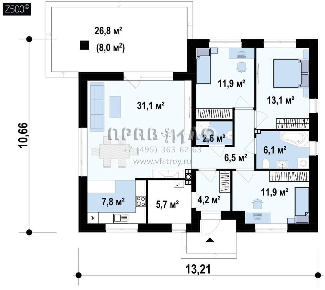 Проект одноэтажного дома S3-101 (Z273 a el)