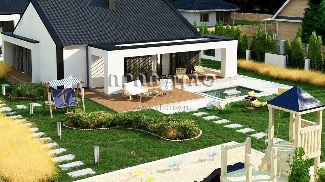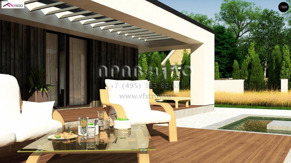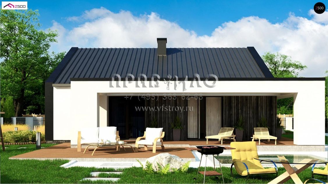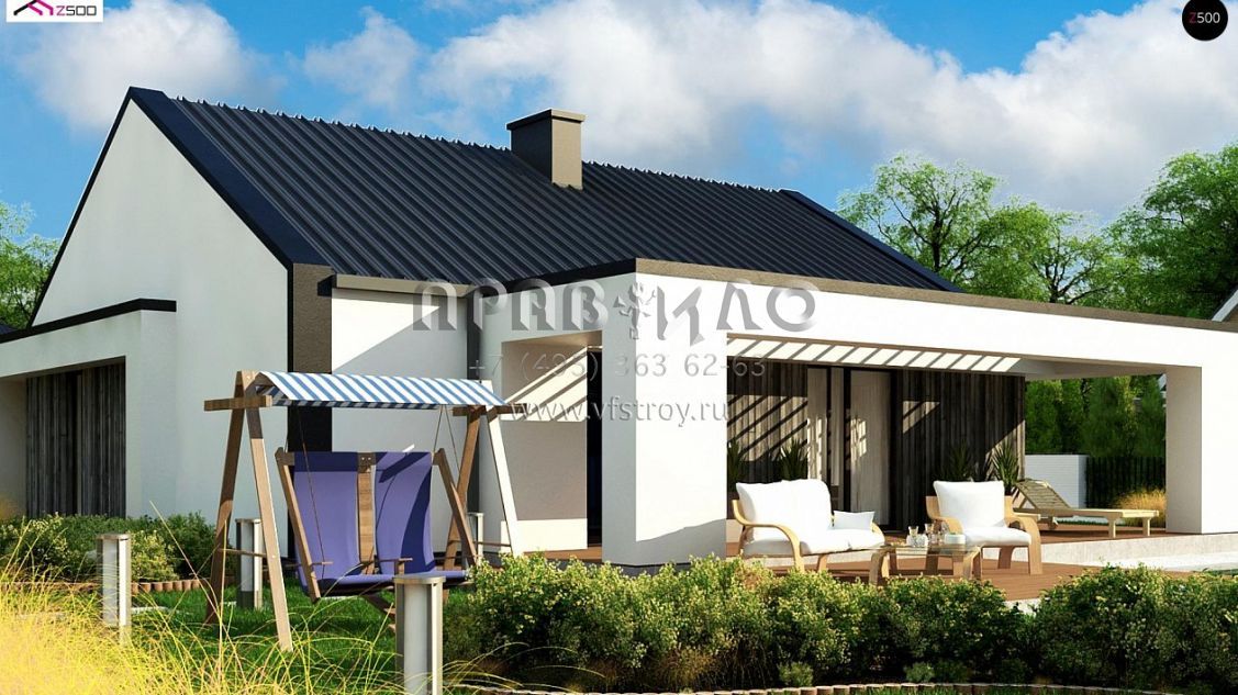 Проект стильного одноэтажного дома с угловой террасой S3-103-6 (Z381)