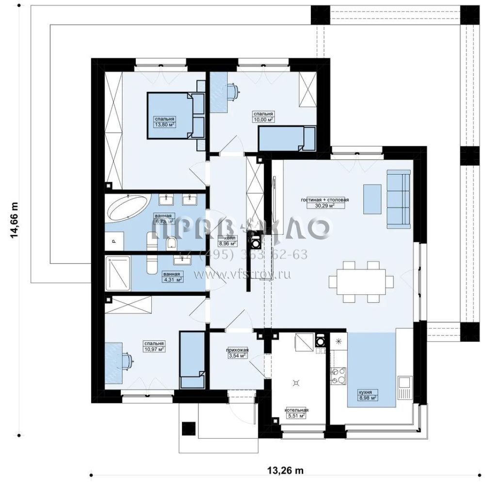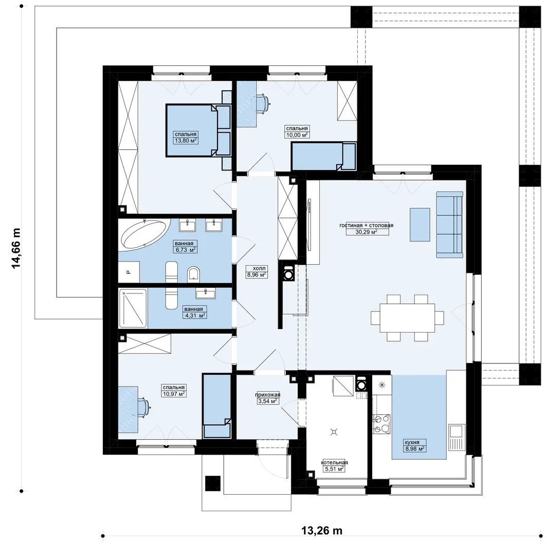 Проект компактного современного одноэтажного дома без гаража S3-103 (Zx138 A sd)