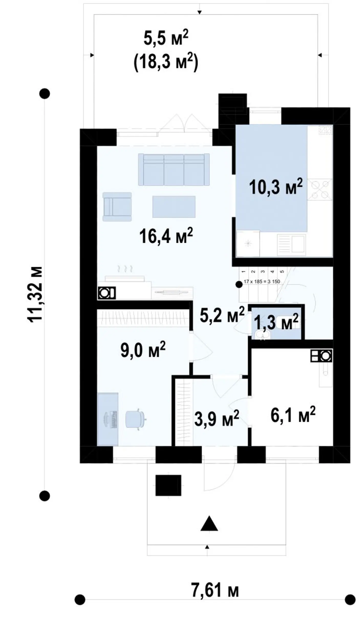 | Возможный материал кровли | металлочерепица, гибкая черепица, керамическая черепица, композитная черепица, цементно-песчаная черепица, фальцевая кровля |