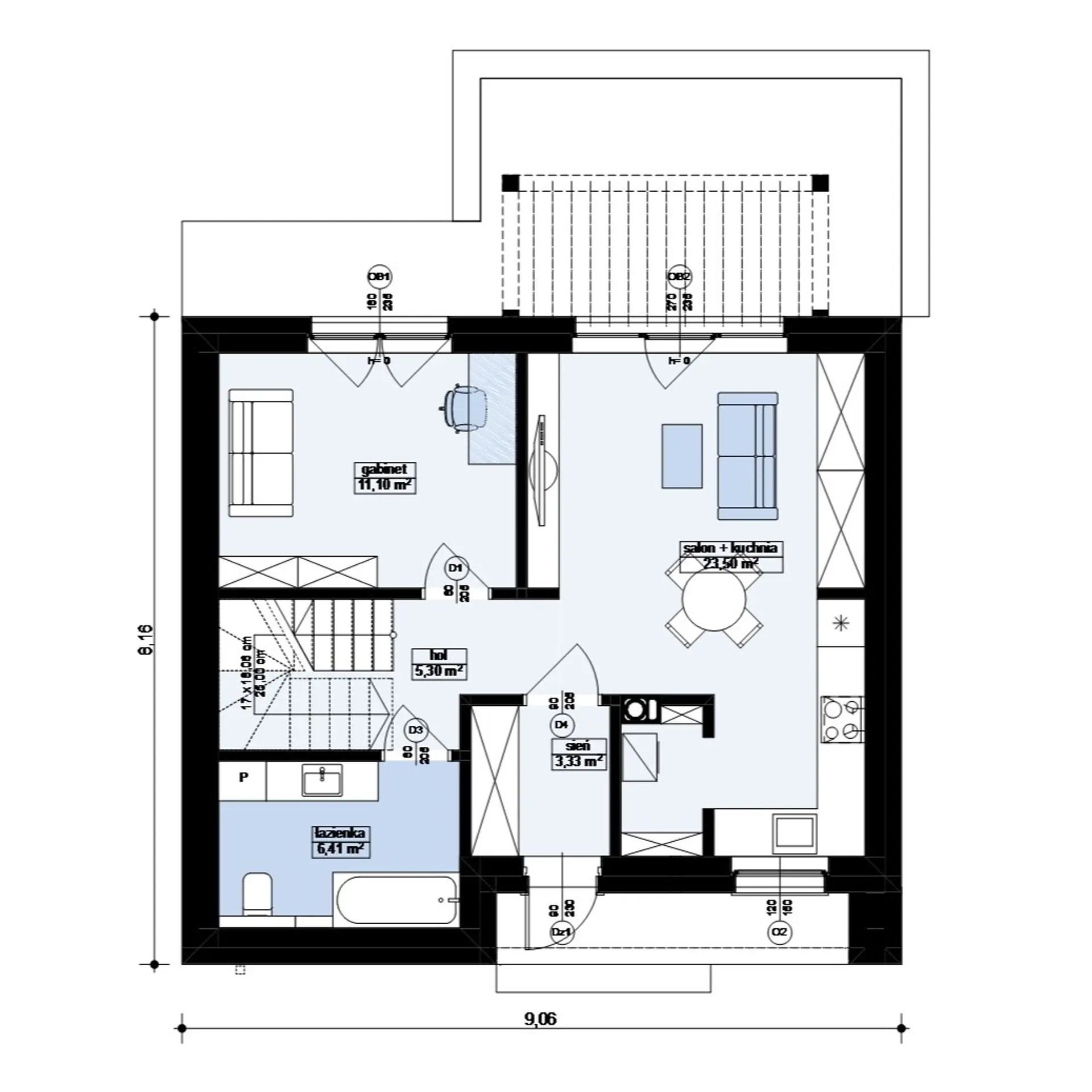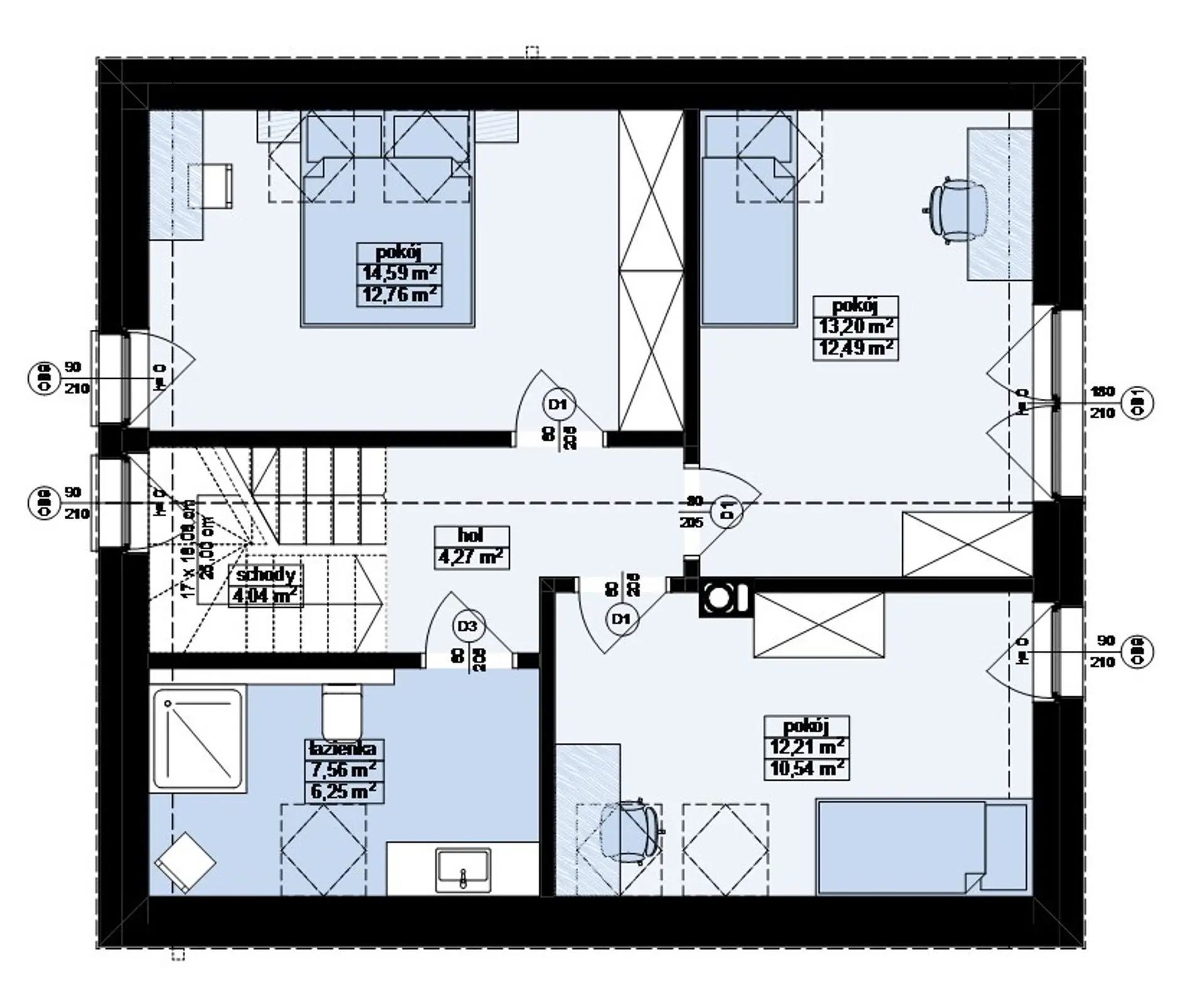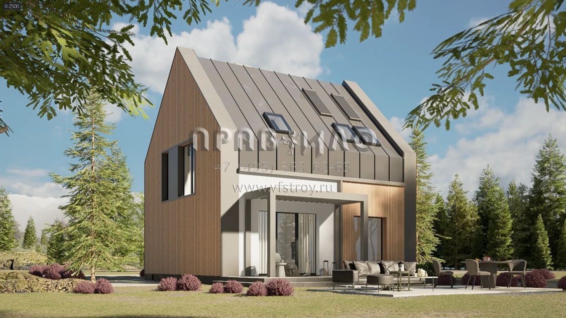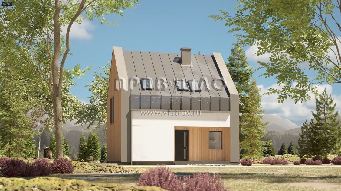 Проект маленького дома с мансардным этажом без свесов кровли s3-105 (Z451)