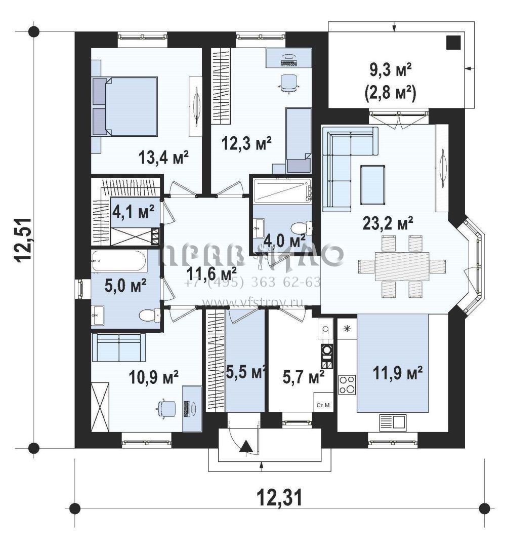 Версия проекта одноэтажного дома Zz16 с гардеробной вместо сауны S3-108 (Zz16 v1)
