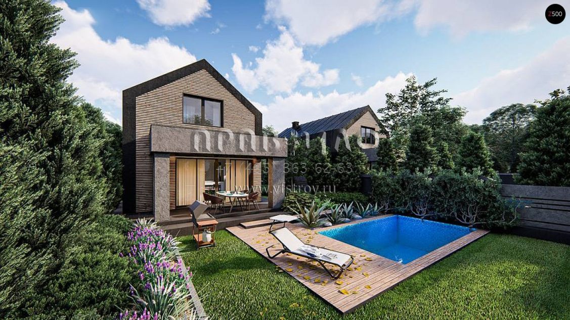 Проект загородного одноэтажного дома с мансардой для узких участков S3-109-8 (Z431)