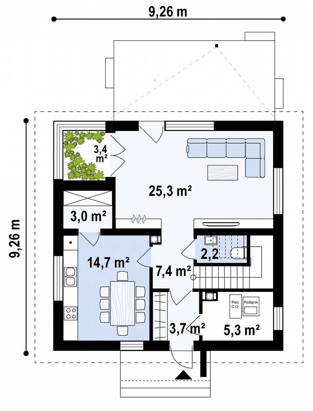 Проект современного одноэтажного мансардного дома с зимним садом S3-109-9 (Z470)
