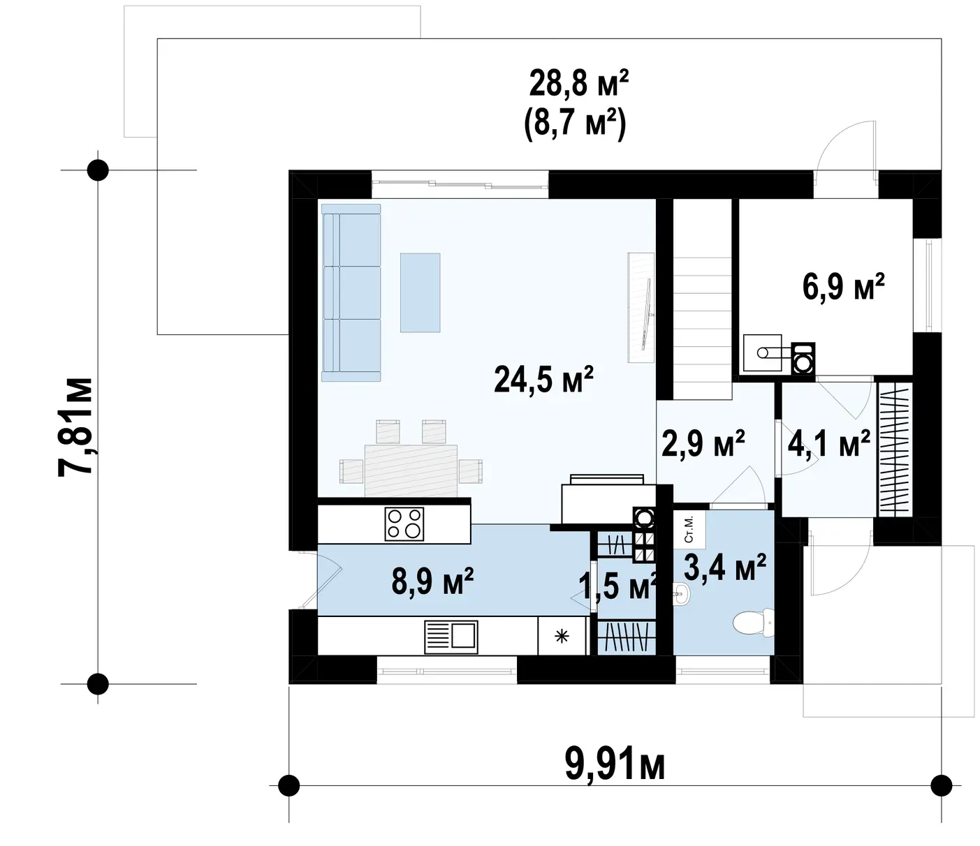 Проект частного дома с кровлей без карниза S3-110-1 (Z229)