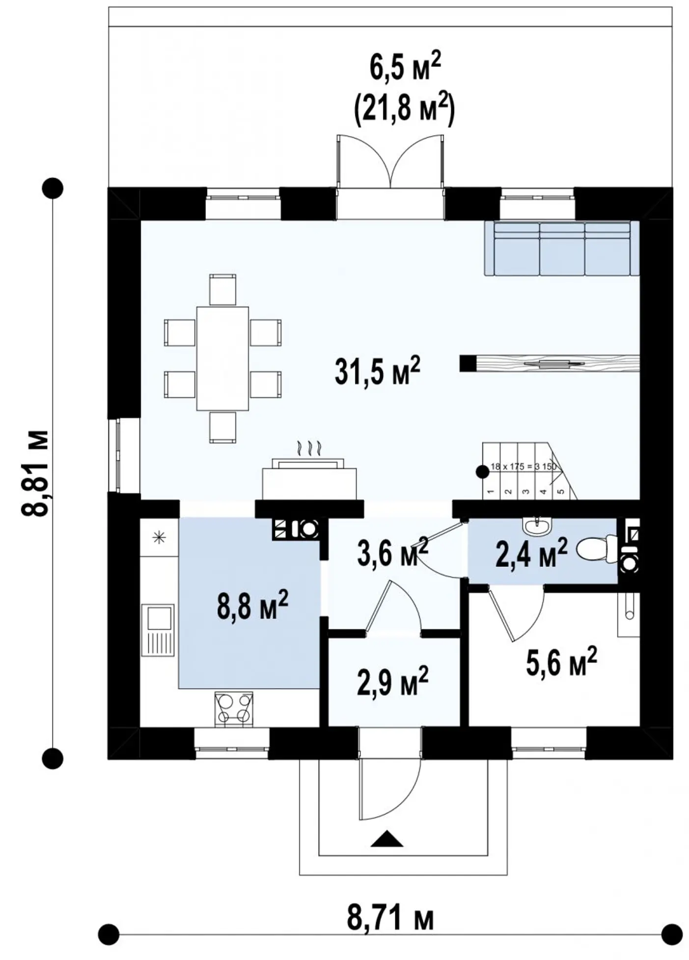 Проект загородного дома с полукруглым камином S3-110-3 (Z4)