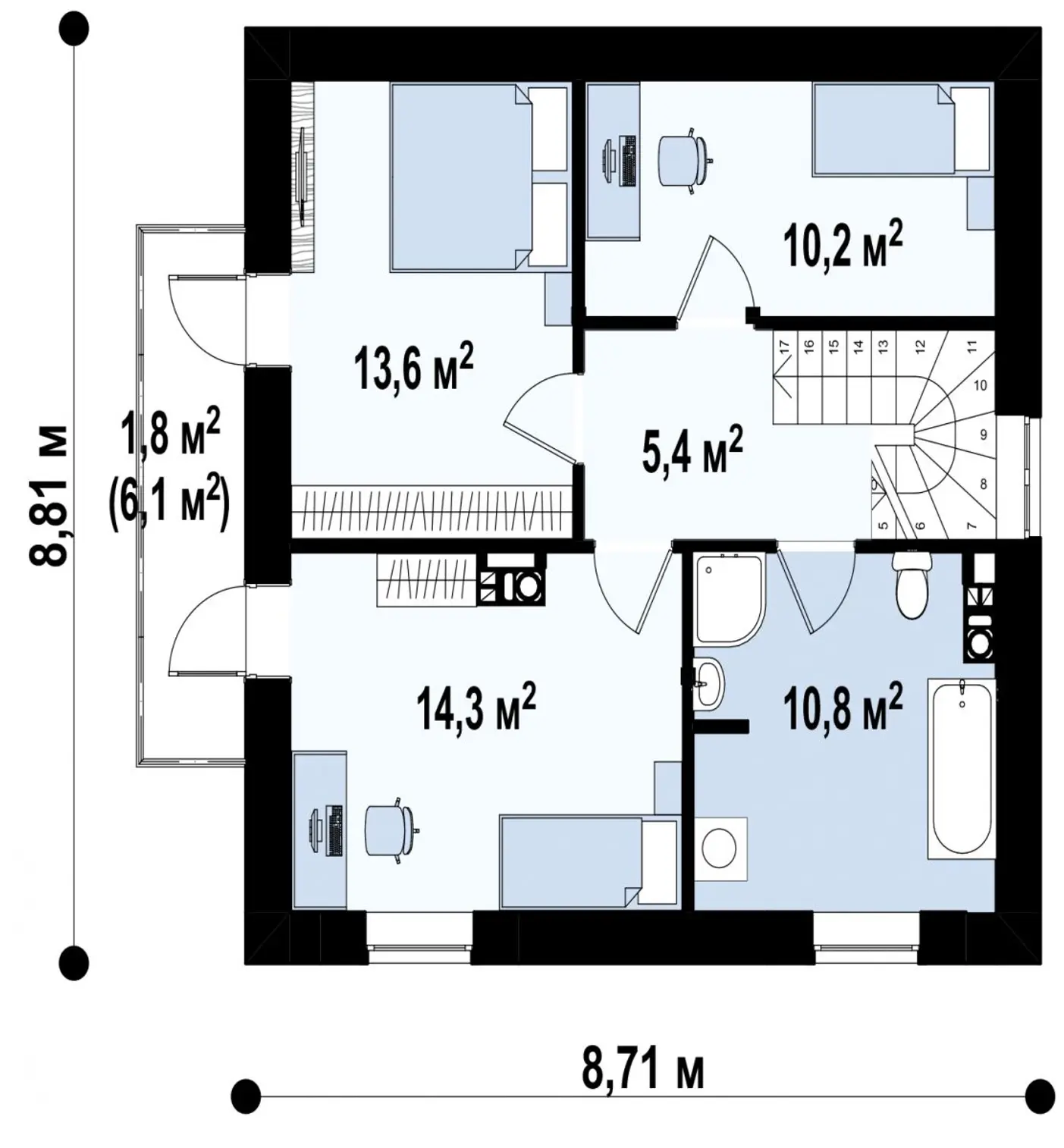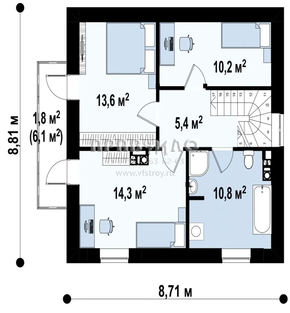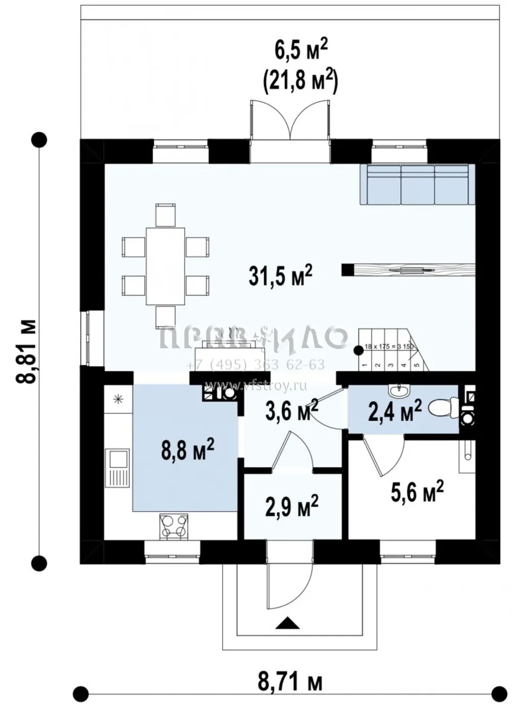 | Возможный материал кровли | металлочерепица, гибкая черепица, керамическая черепица, композитная черепица, цементно-песчаная черепица, фальцевая кровля |