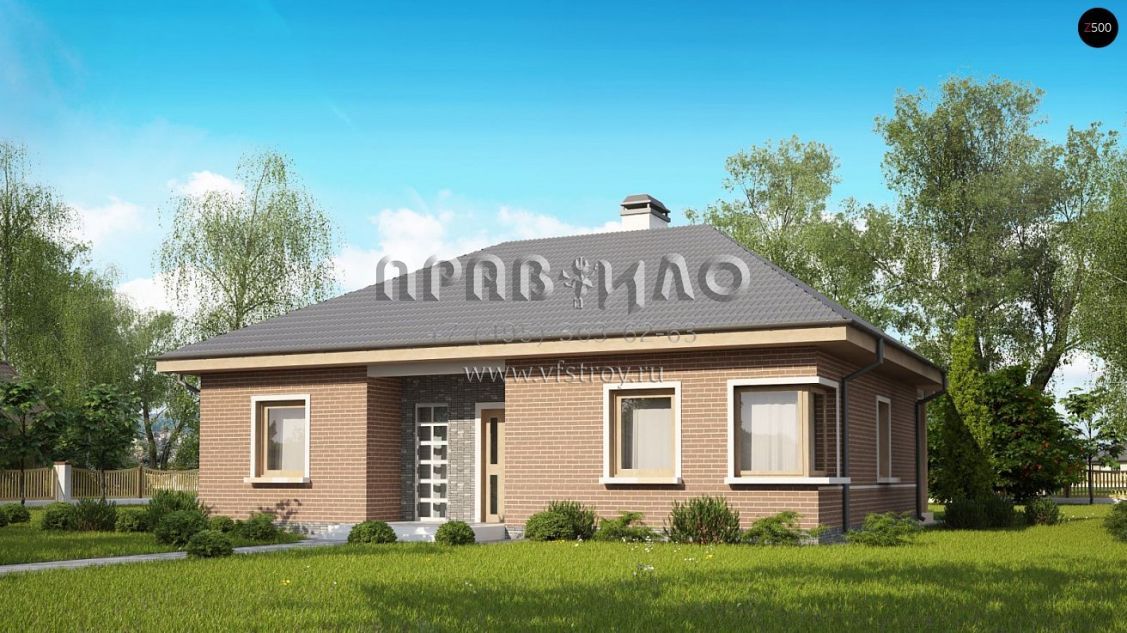Проект одноэтажного квадратного в плане дома с четырехскатной крышей S3-110-5 (Z24 k)