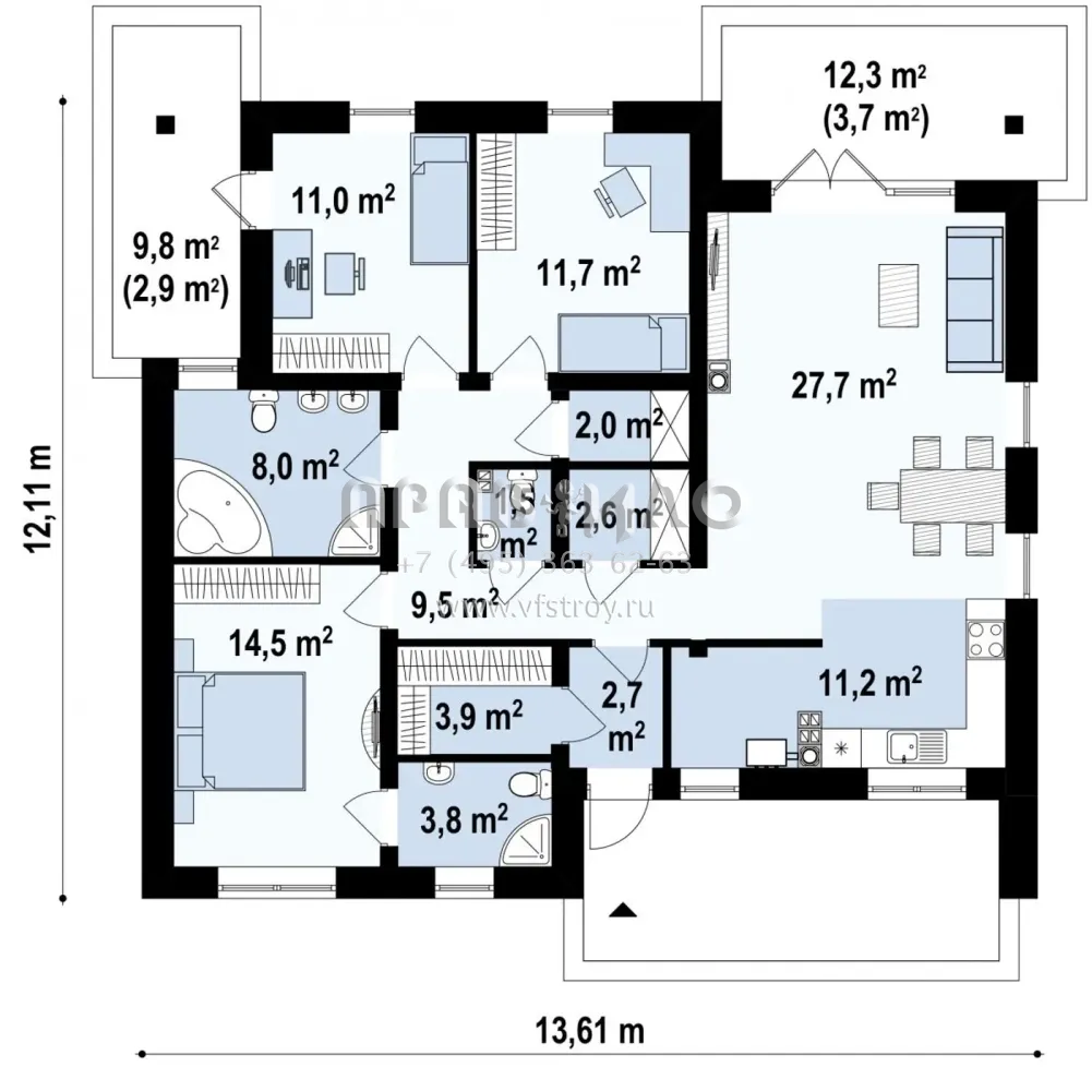 Проект одноэтажного частного дома с четырехскатной кровлей S3-111-3 (Z230)