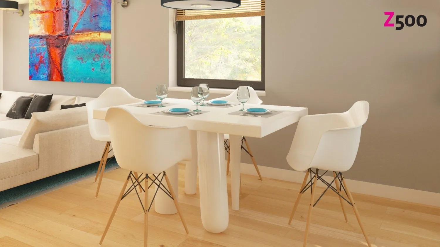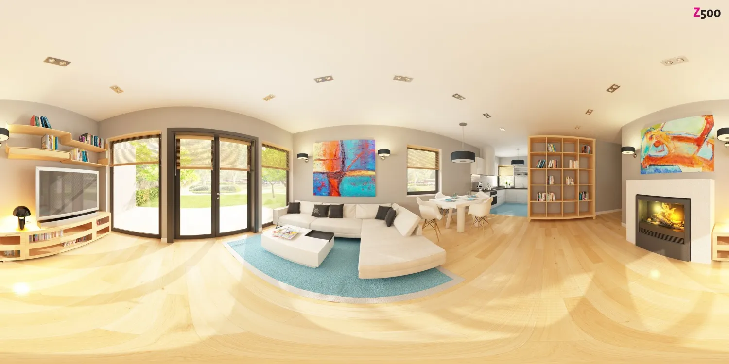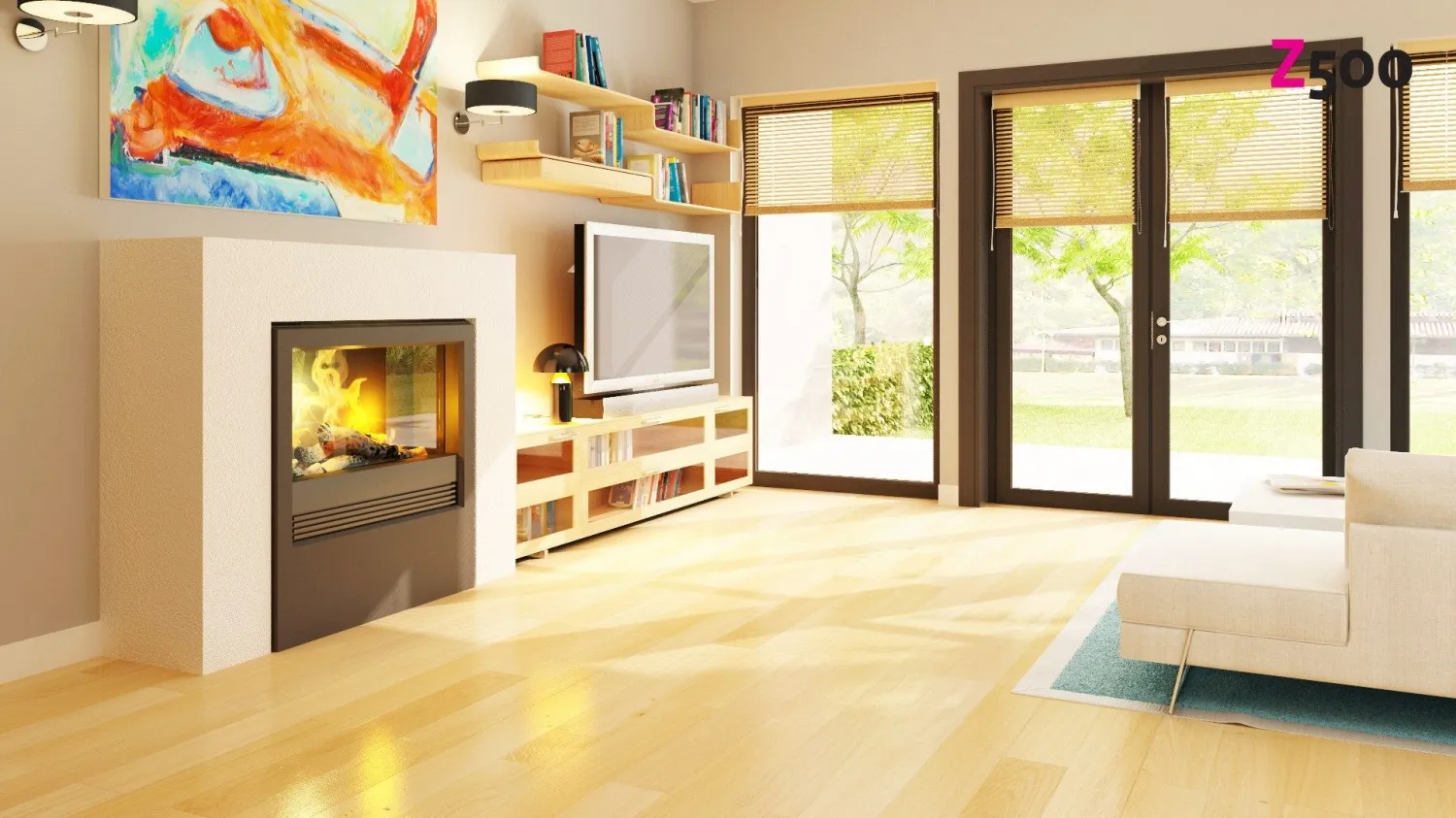 Проект современного квадратного дома с камином в гостиной S3-111-4 (Z24)