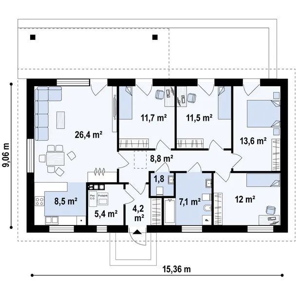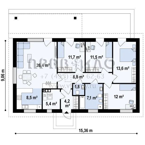 Проект пятикомнатного одноэтажного дома с удобной планировкой S3-111 (Z376)